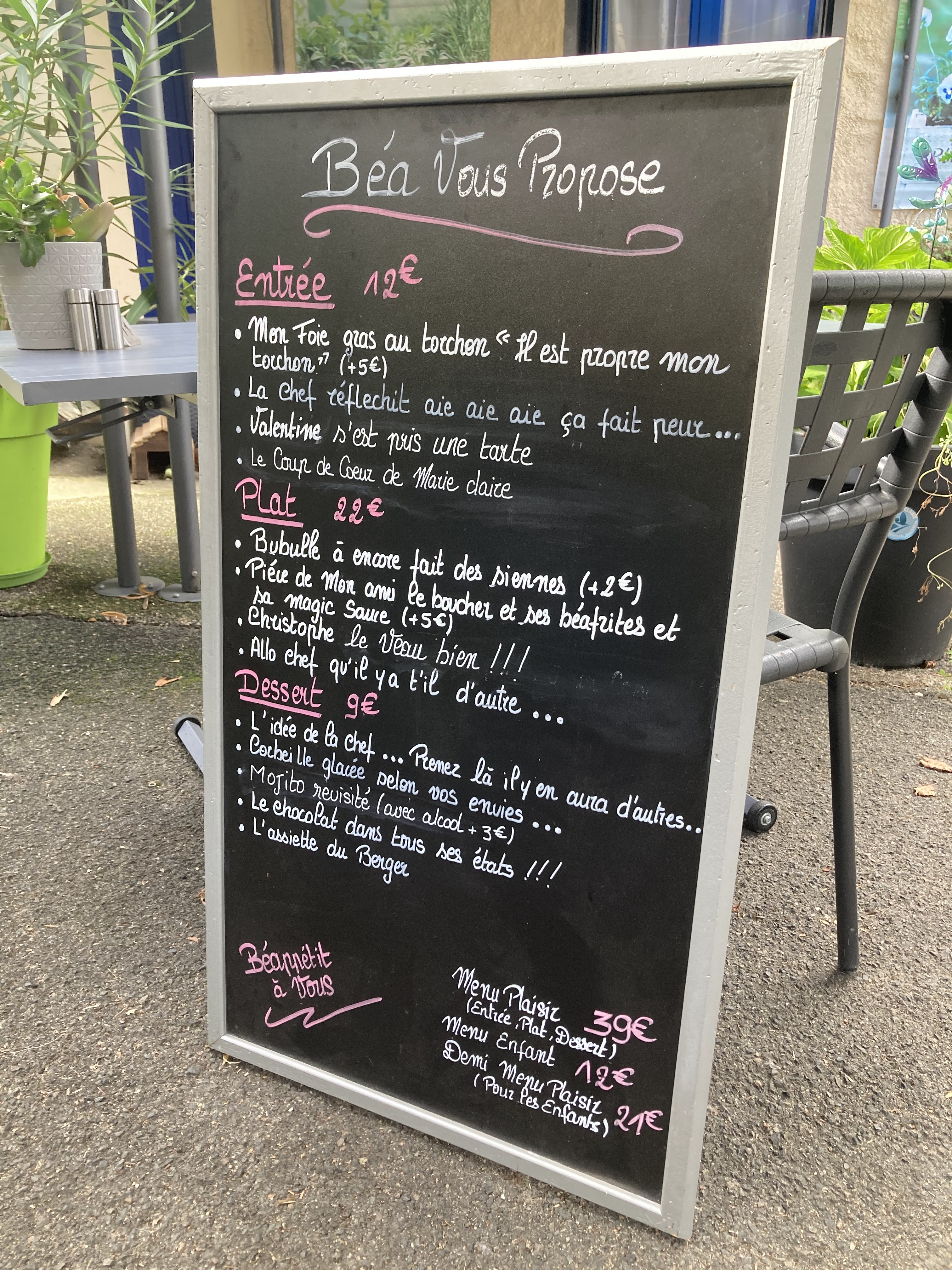 Très bon restaurant , je recommande vivement. Une belle carte pleine d humour et très appétissante. Bea la gérante et sa stagiaire Samia sont très accueillantes. Un cadre chaleureux qui donne envie de revenir. Les plats sont fait maison. Rapport qualité prix parfait. Allez y les yeux fermés.