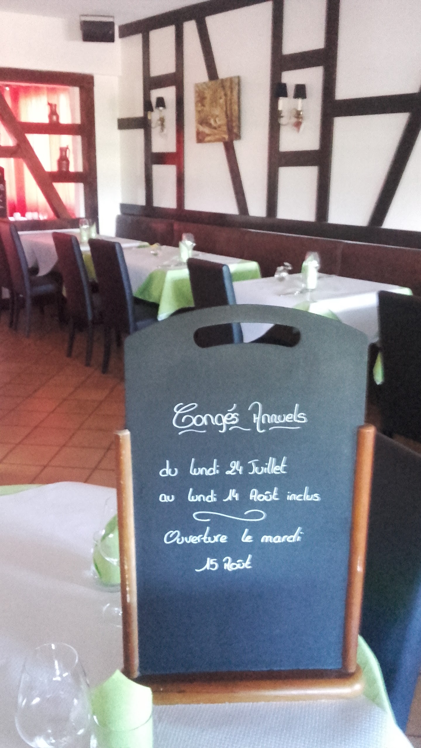 Posté le 05/05/2024 à 17:50"Bonne petite adresse à proximité de Marckolsheim. Restaurant visible de la route avec un grand parking. Possibilité de plat du jour le midi ou à la carte le soir. Nous avons testé le cordon bleu, l'escalope champignon, l'effiloché de veau et l'entrecôte. Le service était rapide et la serveuse très sympathique. En dessert, la crème brûlée pain d'épice et le vacherin maison étaient super. Je reviendrai."