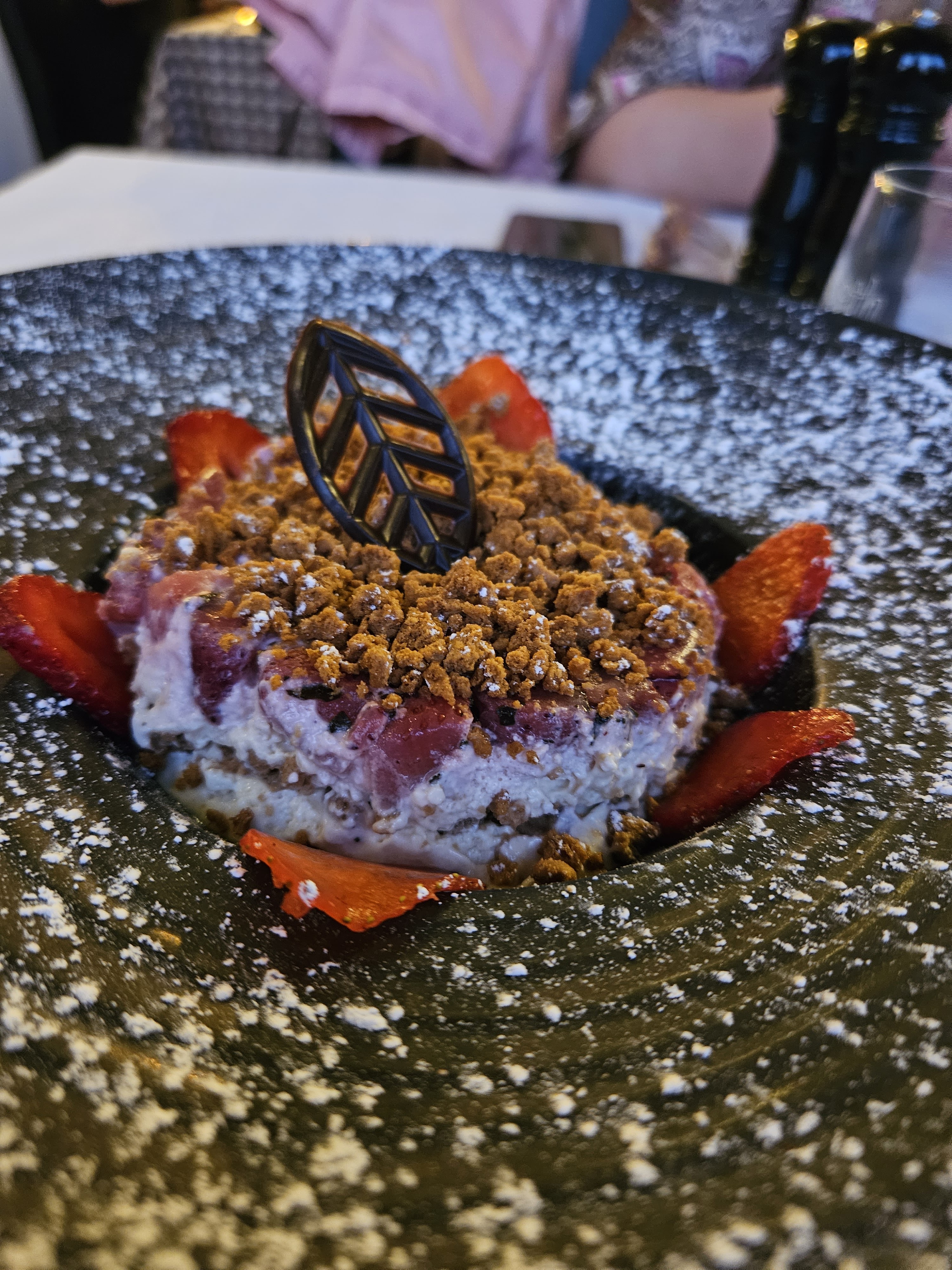 Arrivée 12h20 parti 14h45 Commande prise à 13h25 Service aimable mais très très très long, même chose pour le dessert, attention aux distances sociales, repas excellent mais indigeste par le stress, dommage pour la journée.