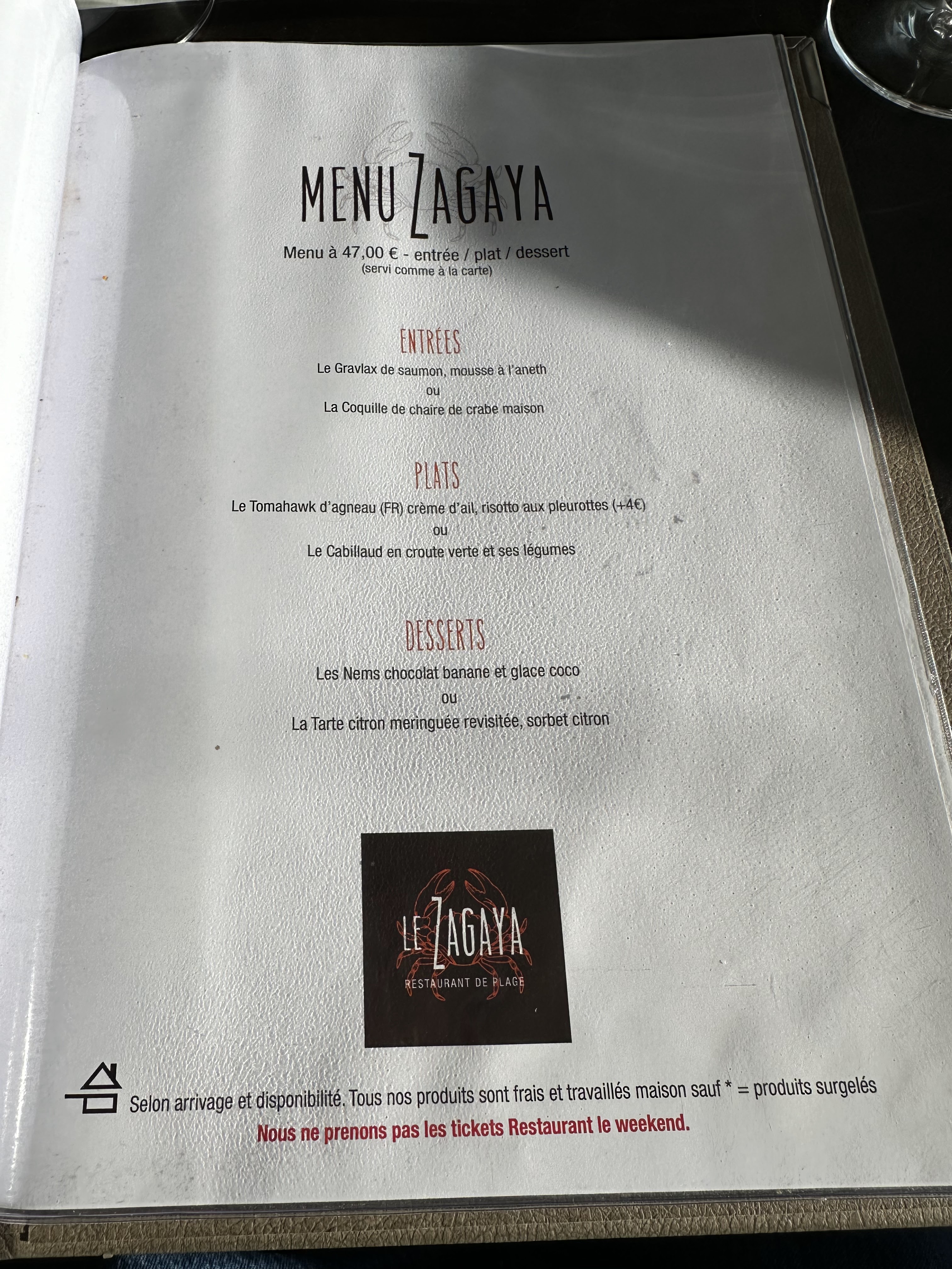 Les pieds dans le sable, une équipe charmante et pro, et les meilleures huîtres que j'ai mangé depuis longtemps. Le petit +, c'est un ensemble de petits détails qui ensemble font la différence. Un seau à glace pour que le vin reste bien frais sur des tables en bois façon pique-nique. Le zagaya c'est un service de qualité, des plats délicieux (mention supplémentaire pour les desserts) avec l'ambiance du resto de plage Je recommande