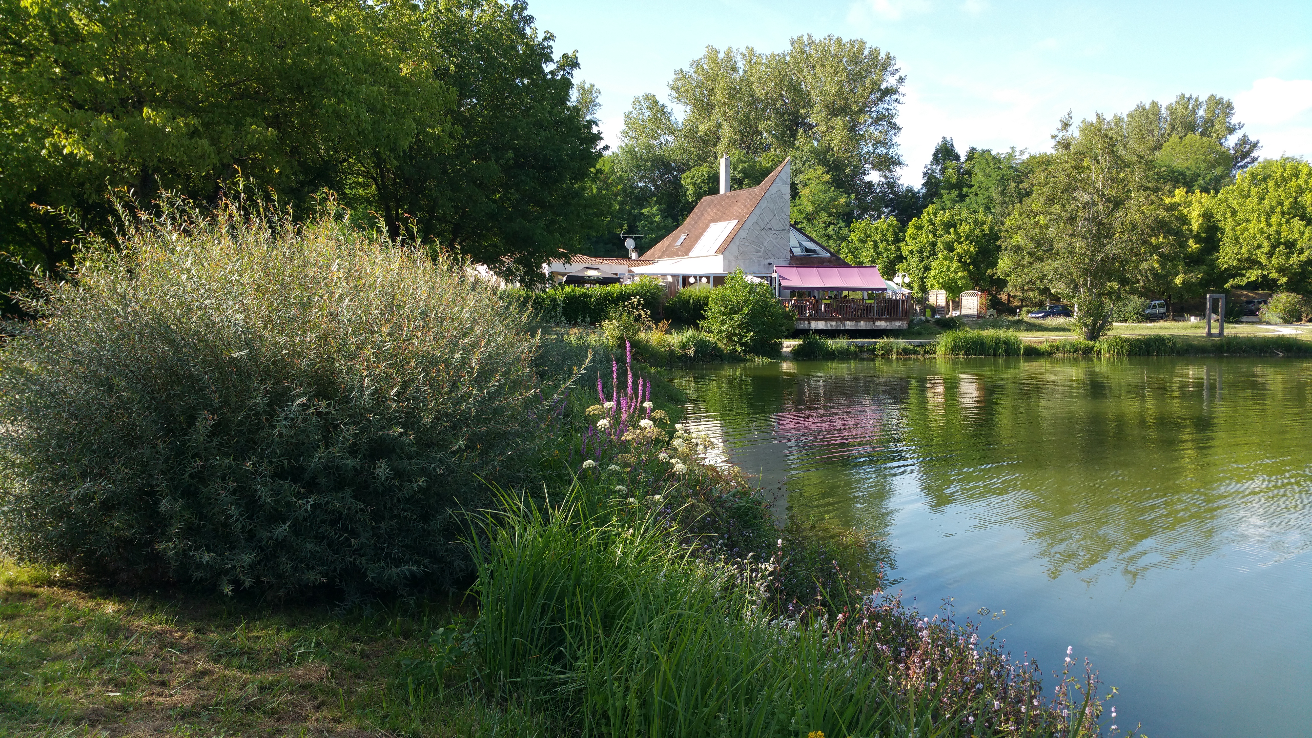 Petit coin sympathique et paisible au bord de l'etang ! Merci à Theo et à la cuisine qui a satisfait nos exigences (assiette de foie gras en apéro non inscrite sur la carte par exemple)!