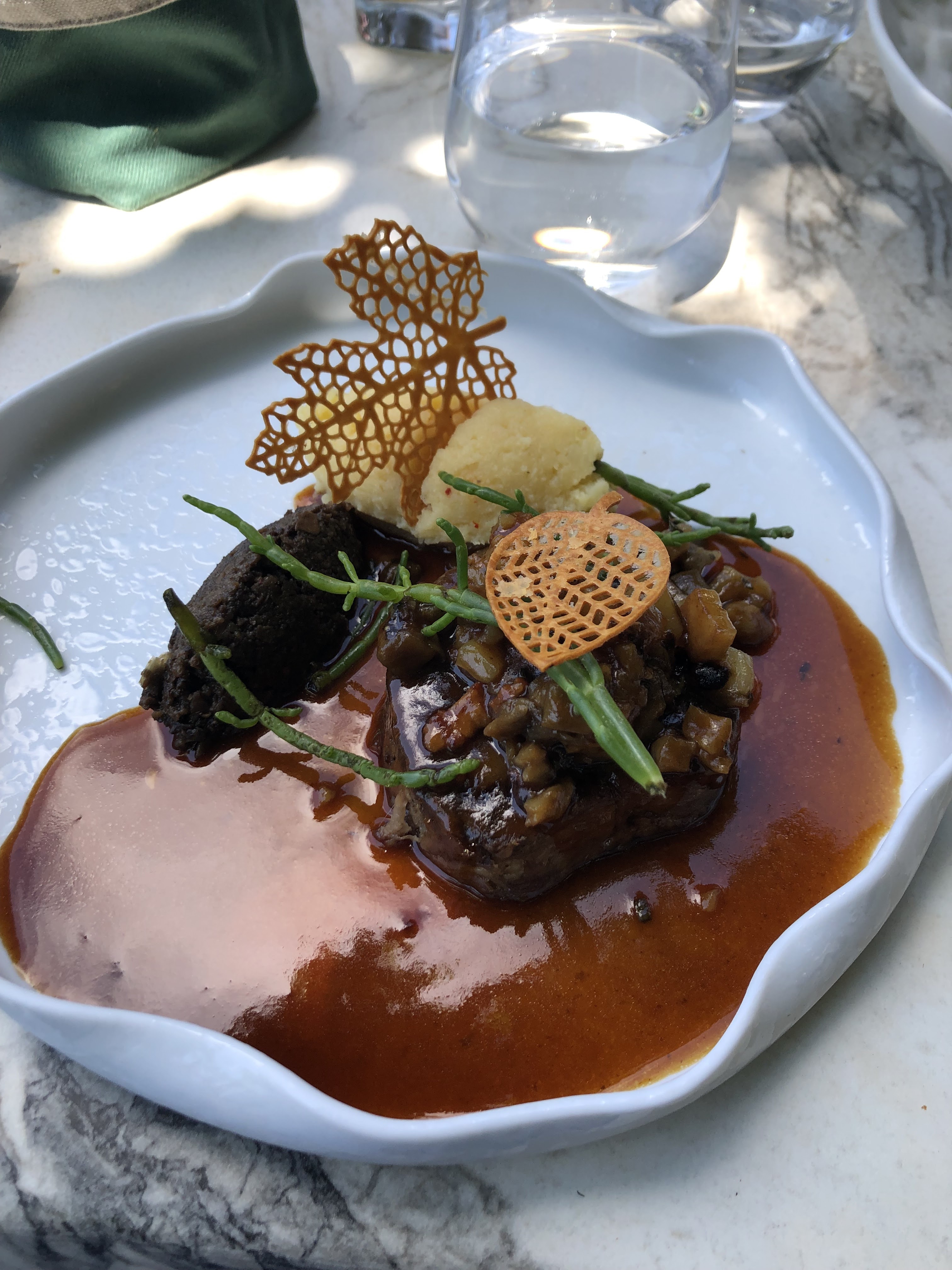 Nous avons apprécié le restaurant, l’emplacement, la vue. Un peu déçu par le déjeuner. Le pâté en croûte un peu sec. Pas suffisamment de jus de viande avec l’agneau qui était très bon par ailleurs. Dessert très bon. Nous avons apprécié le cromesquis proposé avec l’apéritif mais regrettons que le café soit servi sans petite douceur (chocolat, pâte de fruit, ou autres petits biscuits). Au final, un bon déjeuner mais pour nous un peu cher pour ce qui a été proposé même s’il y a beaucoup de travail derrière.