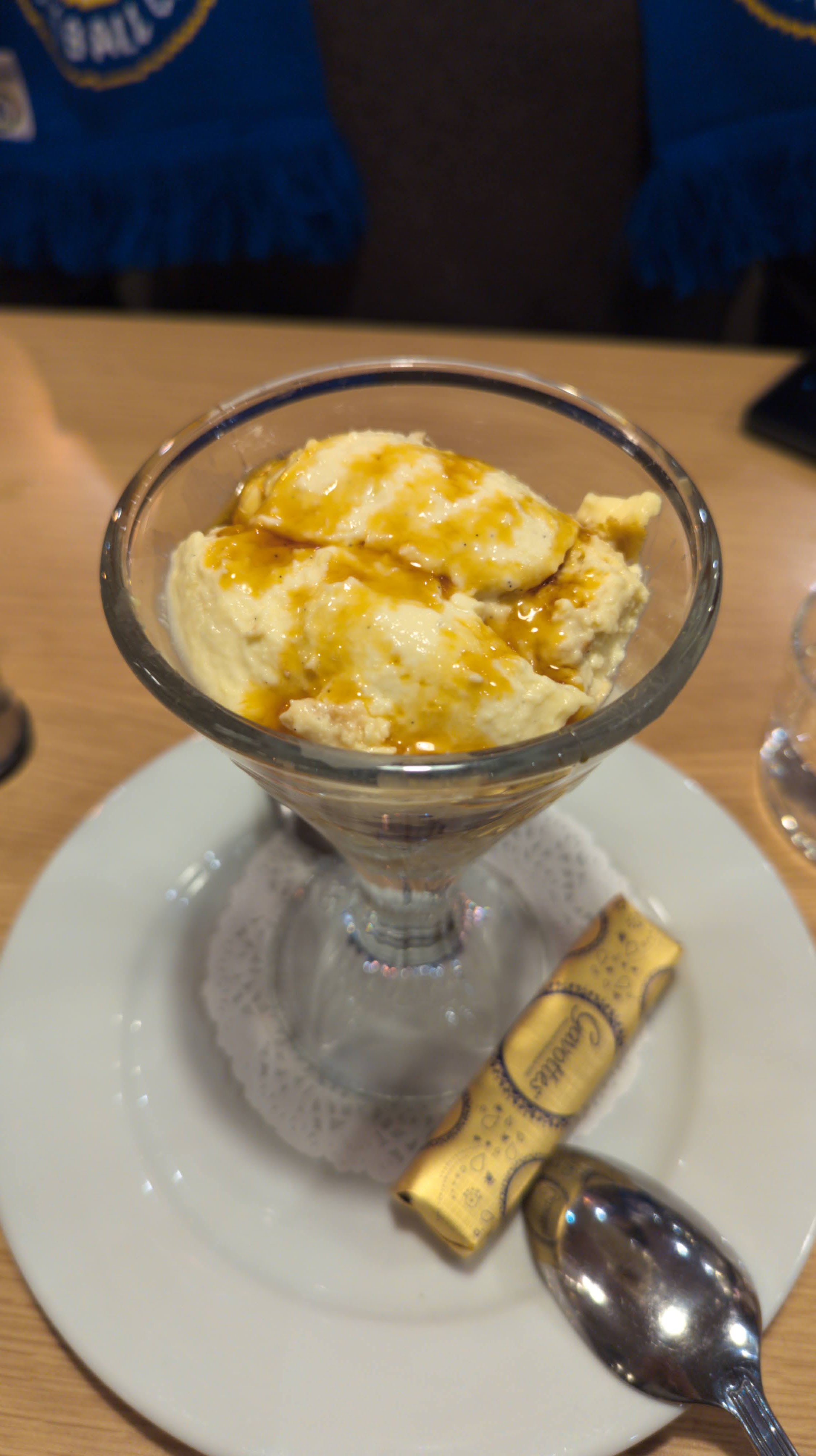 Boudin aux 2 Purées sauce moutarde à l ancienne à la violette...une tuerie!!!! Et en dessert un flanc à la louche façon grand mère...la le gral...je replonge 40 ans en arrière ... Je vous recommande vraiment cet établissement de qualité et authenticité...🫠🫠🫠😜👌