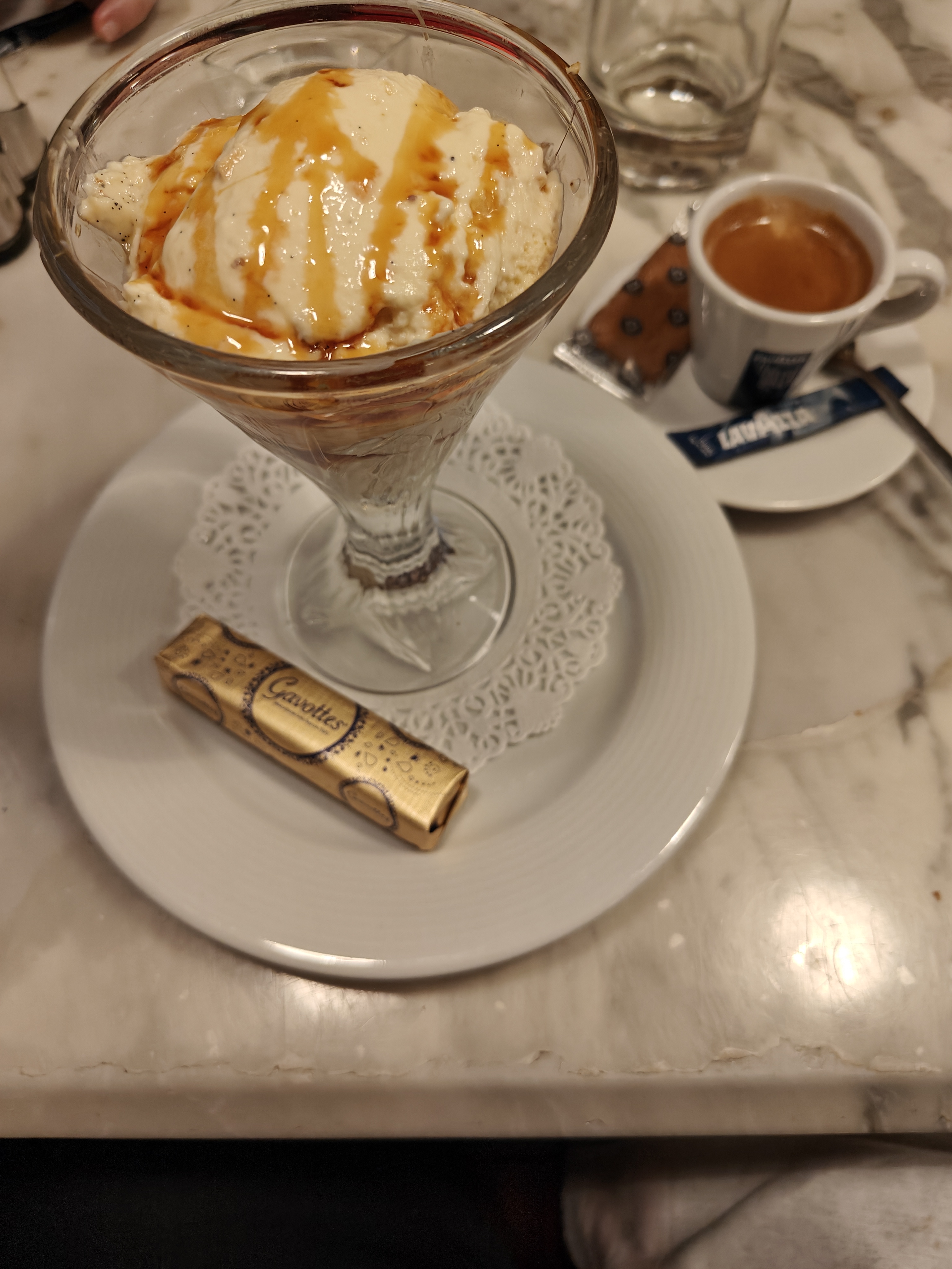 Super petit restaurant à côté de l'olympia. Une belle carte. Des plats cuisinés avec des bons produits. Un service impeccable. Et en dessert le flan à la louche à goûter impérativement. J'aurais bien mis 4.5 mais ce n'est pas possible.