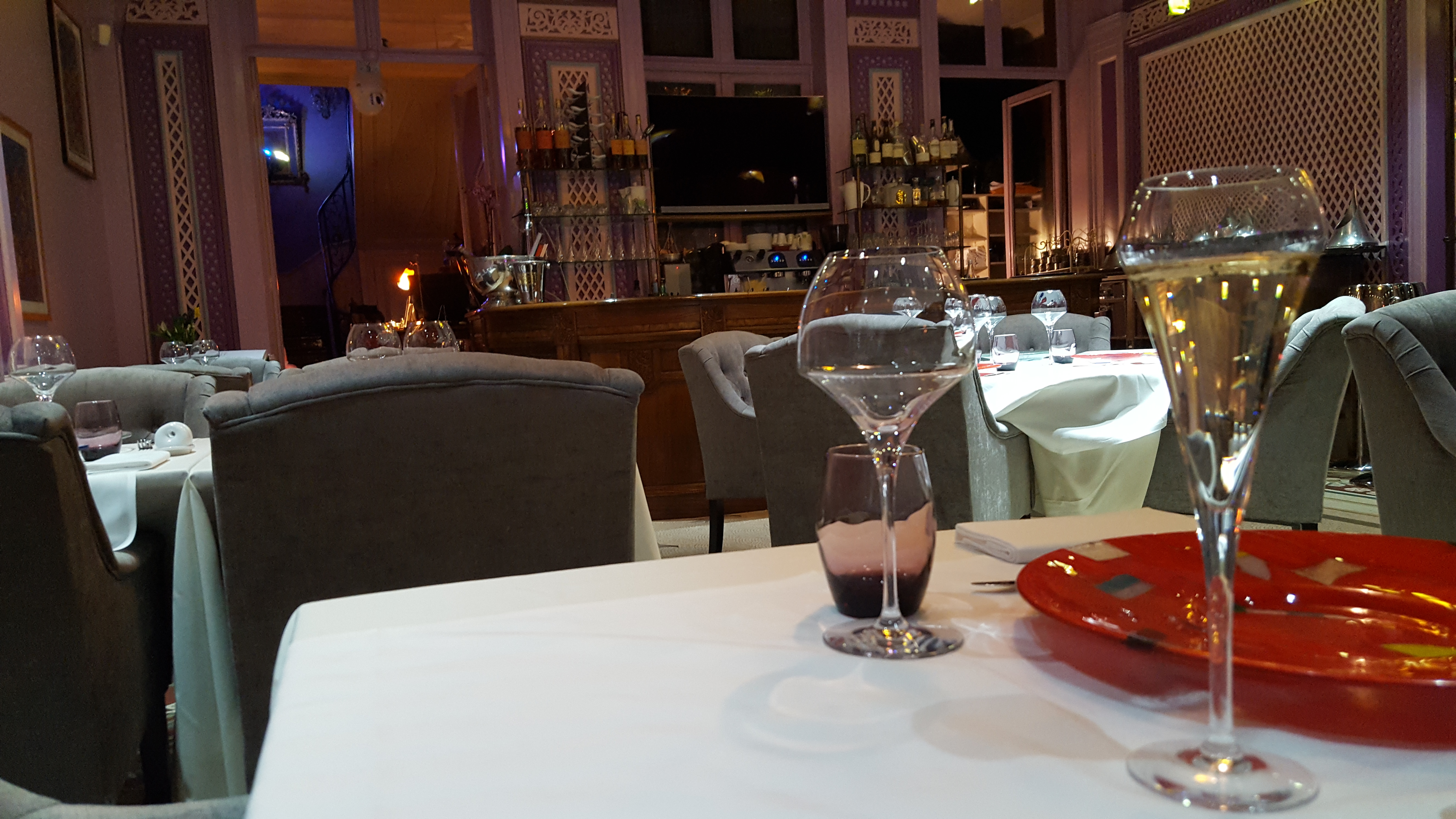 Restaurant cossu, très jolies décorations intérieure et extérieure, dommage que les assiettes ne servent que de décorations mais c'est du plus bel effet. L'architecture est ancienne et peu commune, très bel effet. L'accueil est professionnel plutôt austère, le service est de bonne facture. Les menus sont un peu décevant du fait du prix. L'aliment principal est de qualité et bien travaillé mais l'accompagnement et le dressage des assiettes mériteraient d'être revu. Déçu par le café et par le bâton de sucre douteux.