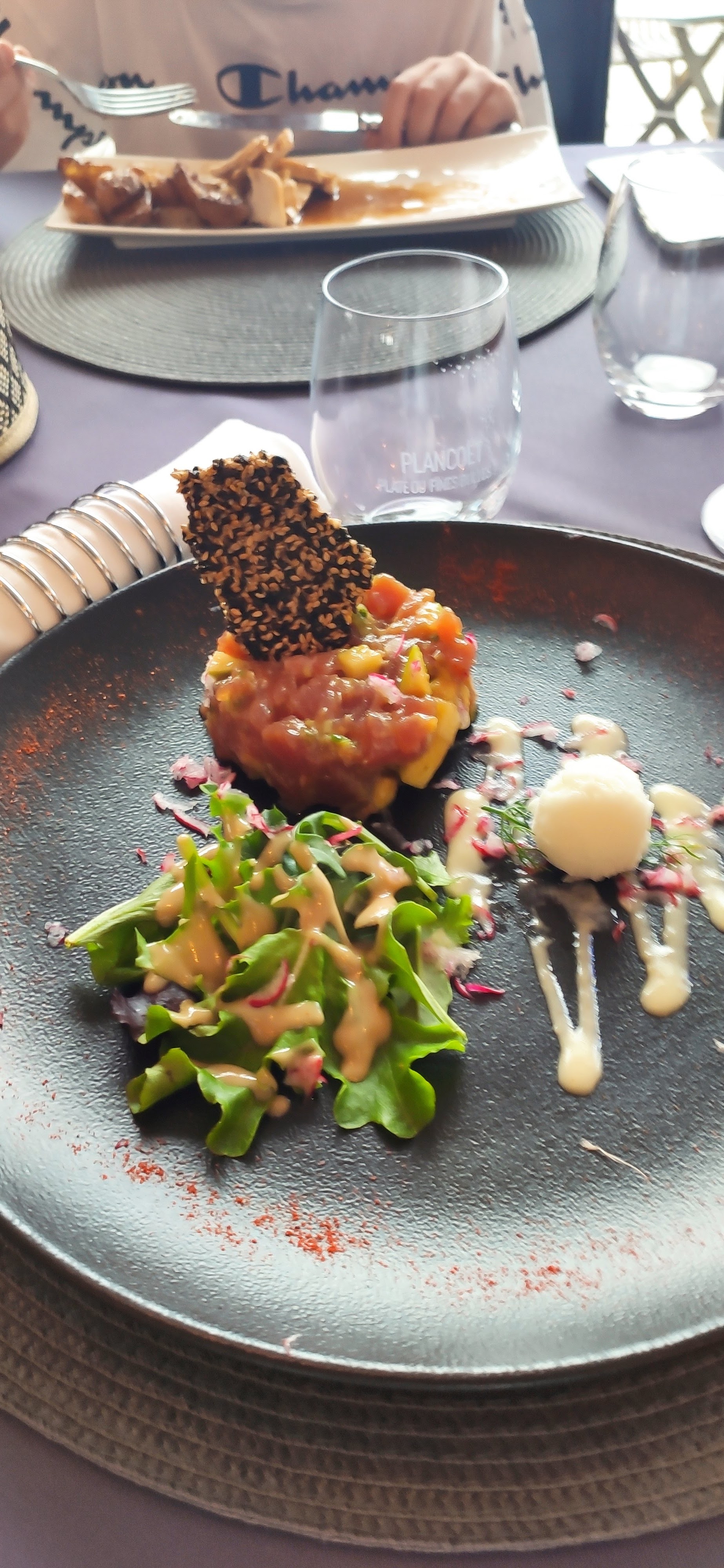 Posté le 07/08/2022 à 05:20"Très bonne expérience...toute l'équipe est très accueillante...l'endroit magnifique tant en déco qu'en panorama...et le travail des saveurs sublime. Le tartare de thon est fabuleux et nous avons pris l'assiette gourmande en dessert...un mixte de tout les desserts...un régal, bravo au chef. Je recommande vivement. Comptez une soixantaine d'euros par personne pour apéritif entrée plat dessert avec bouteille de vin."