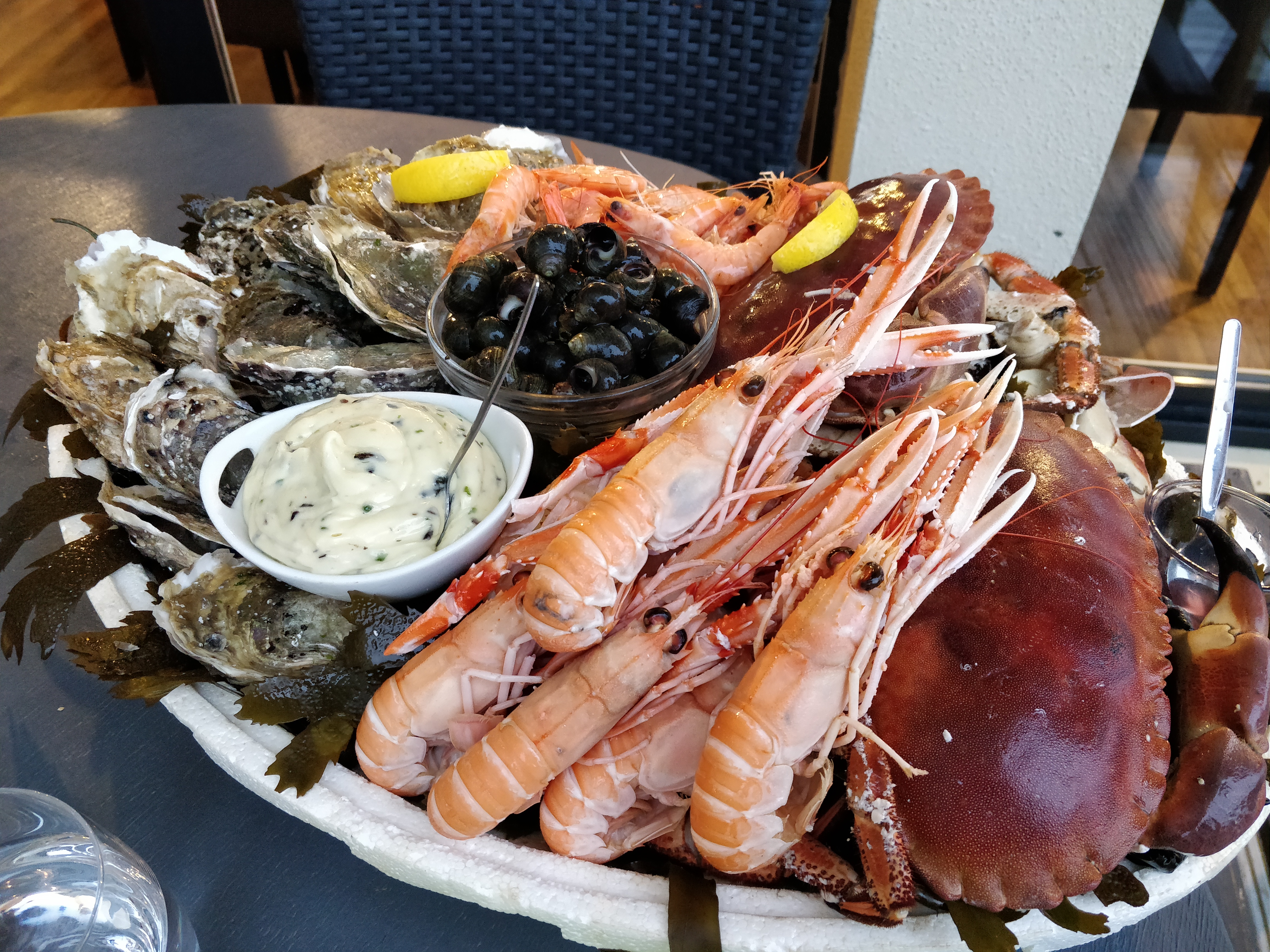 Posté le 14/07/2017 à 08:38"Accueil extrêmement sympathique, le personnel est très attentionné. Nous avons mangé un plateau de fruits de mer gargantuesque et d'une fraîcheur inegalable !"