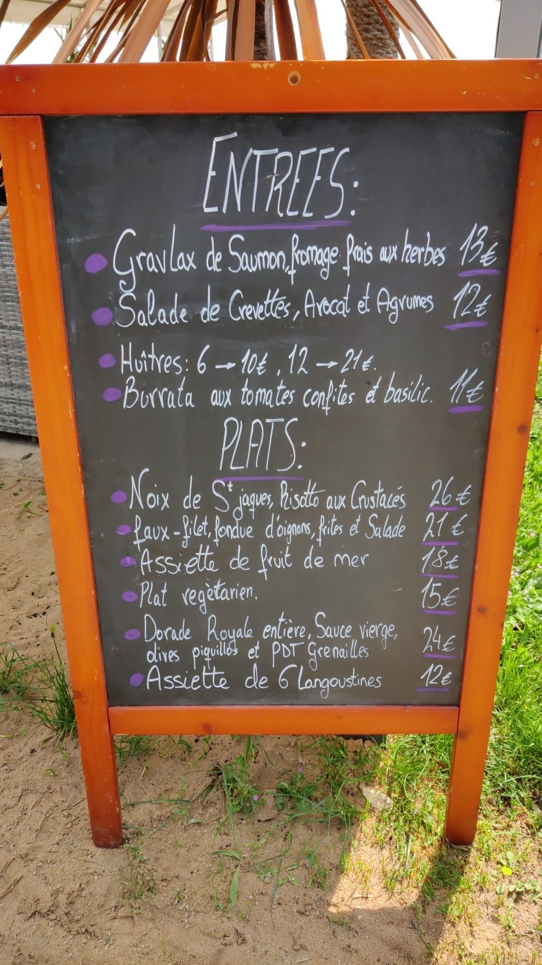 Emplacement en bord de mer très agréable serveurs agreables et disponibles reste que les plats ne sont pas au niveau du prix et que le manager n a qu une vague idée de comment traiter un client. Il semble considérer que le client est de toute façon de passage, et que son tiroir-caisse prime sur toute autre considération !!!