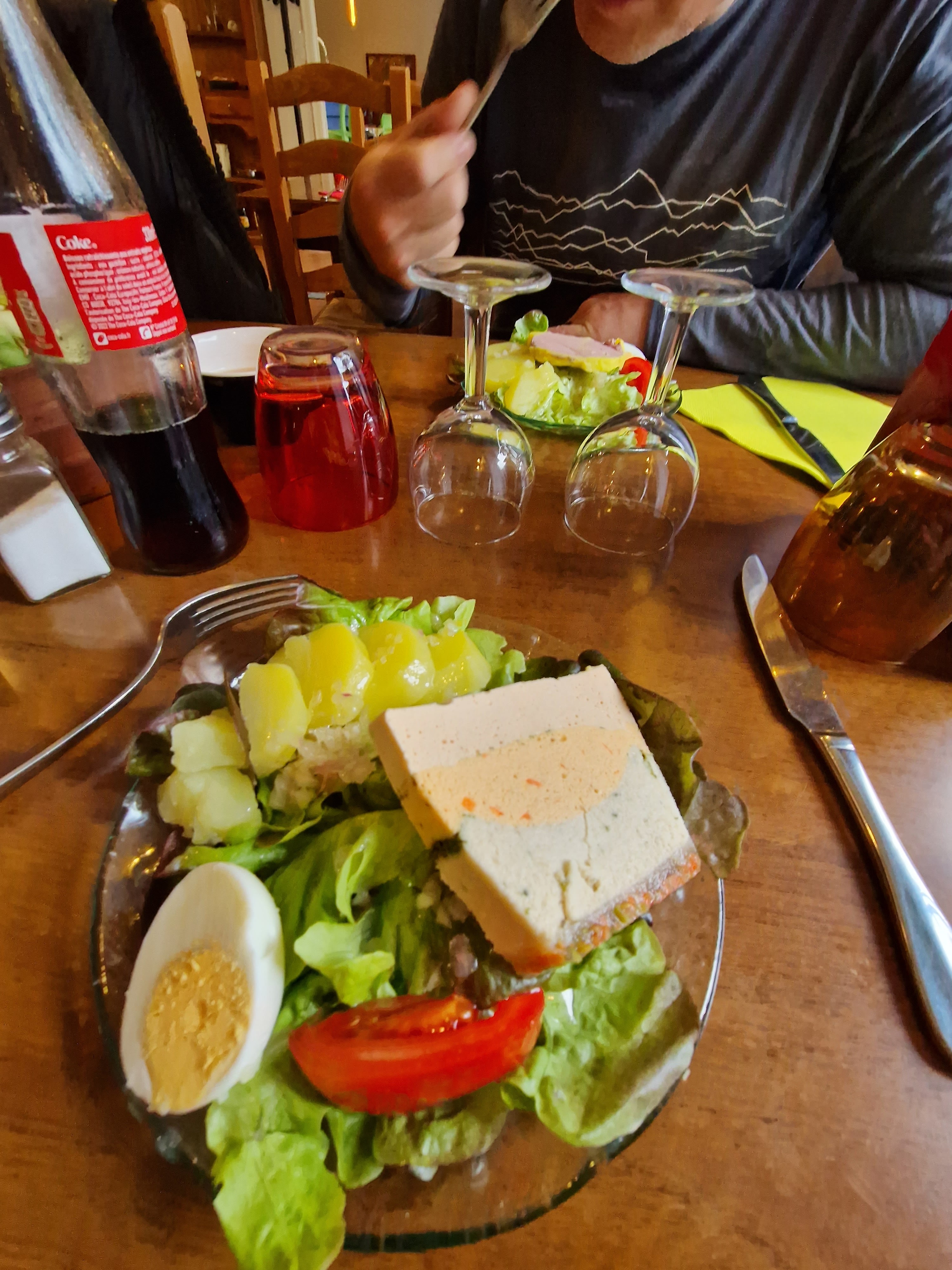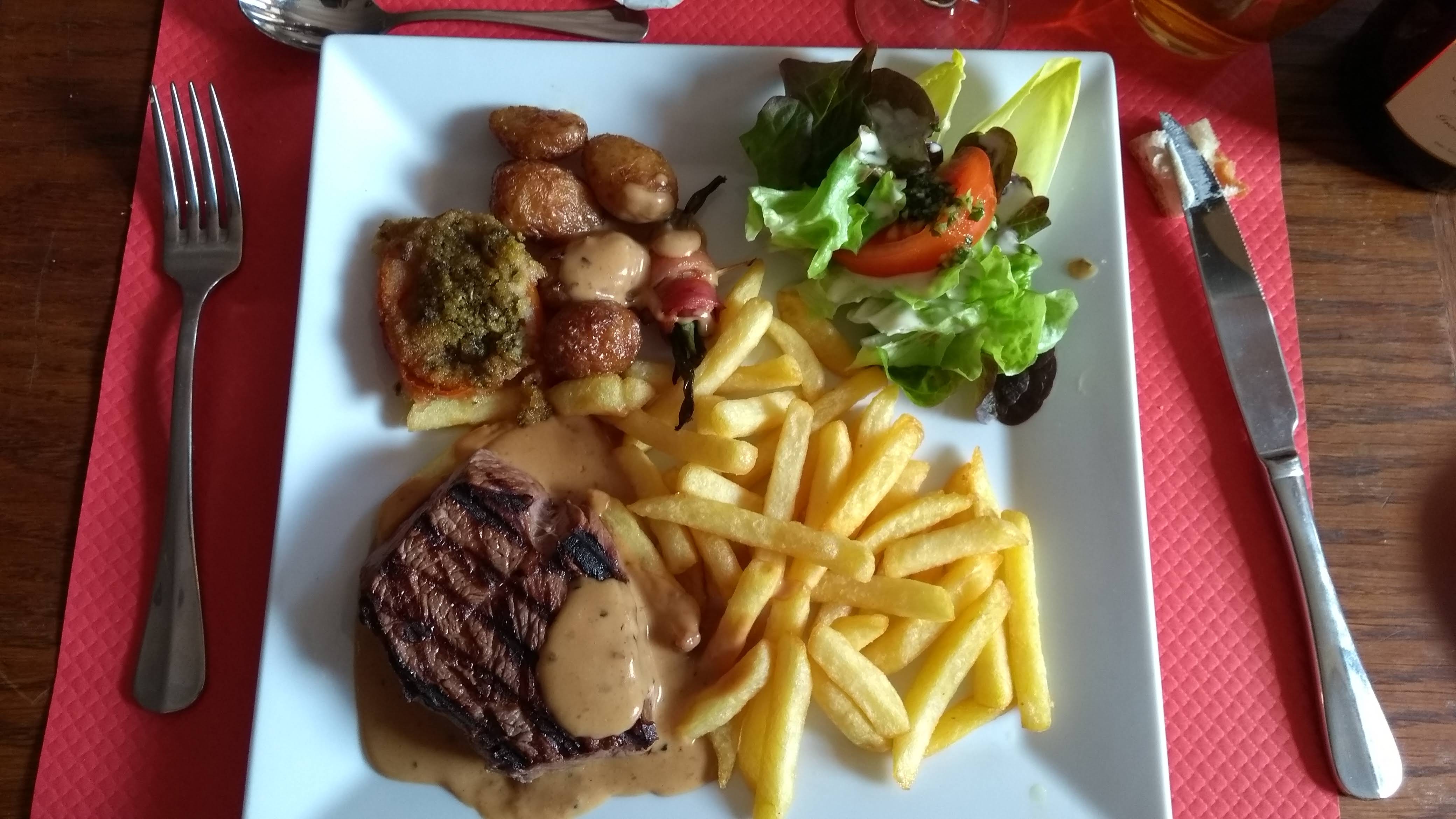 Entrée très généreuse, faux filet très tendre, glace délicieuse. Pause très appréciée pendant une petite rando.