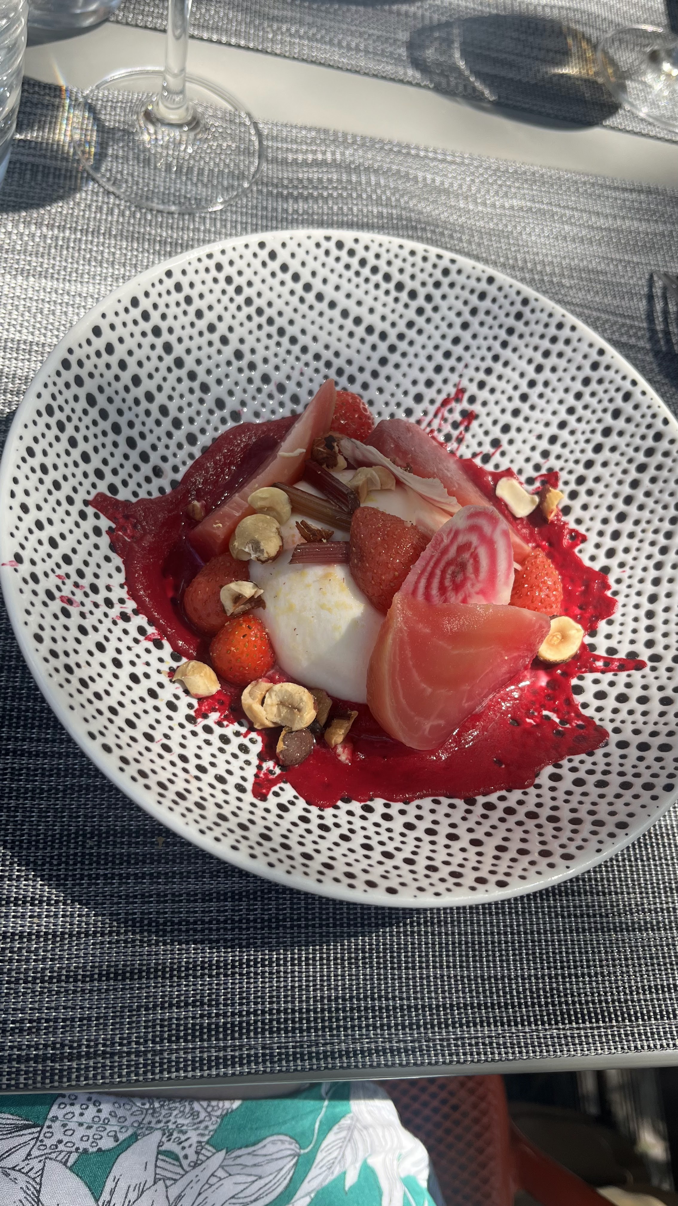 très belle endroit néanmoins il fait très chaud sur la terrasse. repas de qualité mais cela reste assez chère donc je mettrai un rapport qualite prix avec un bémol. on est quand même sur un menu aux alentours de 40 à 50 euros. service impeccable.