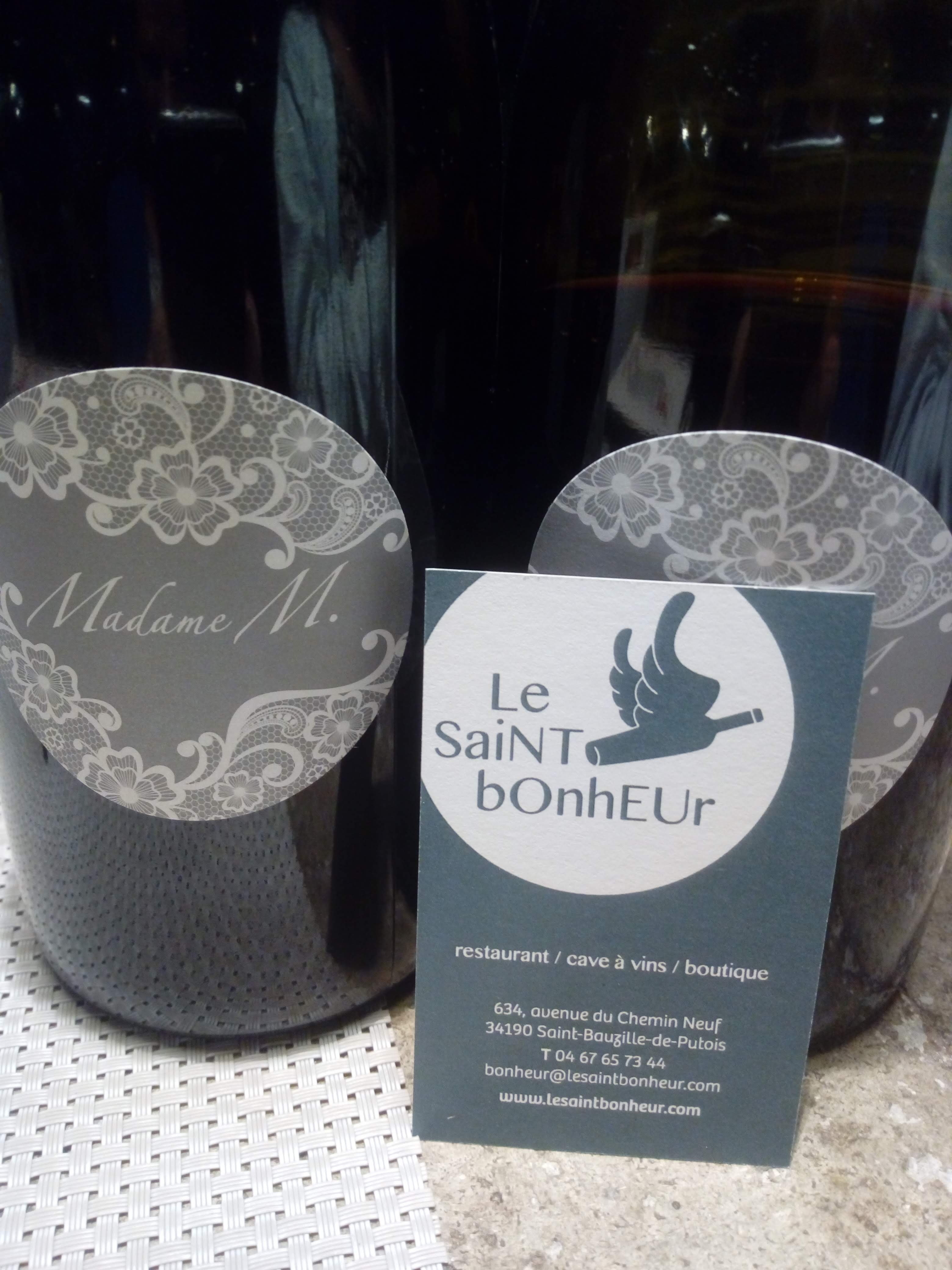 Superbe dîner au St Bonheur, à quelques minutes du nord de Montpellier. Une cave magique avec de belles bouteilles, parfois des raretés, des patrons adorables et passionnés : les anciens gérants de Mesdames Messieurs qui était LA référence du restaurant à la cuisine bio et aux vins Nature. Ils ont trouvé un cadre magnifique, au bord de la rivière, ils ont leur potager et leur jardin à aromates, ils ont leur cuisine qui déchire, ils ont leur cave qui surprend, fascine et envoûte, bref à recommander sans hésitation !