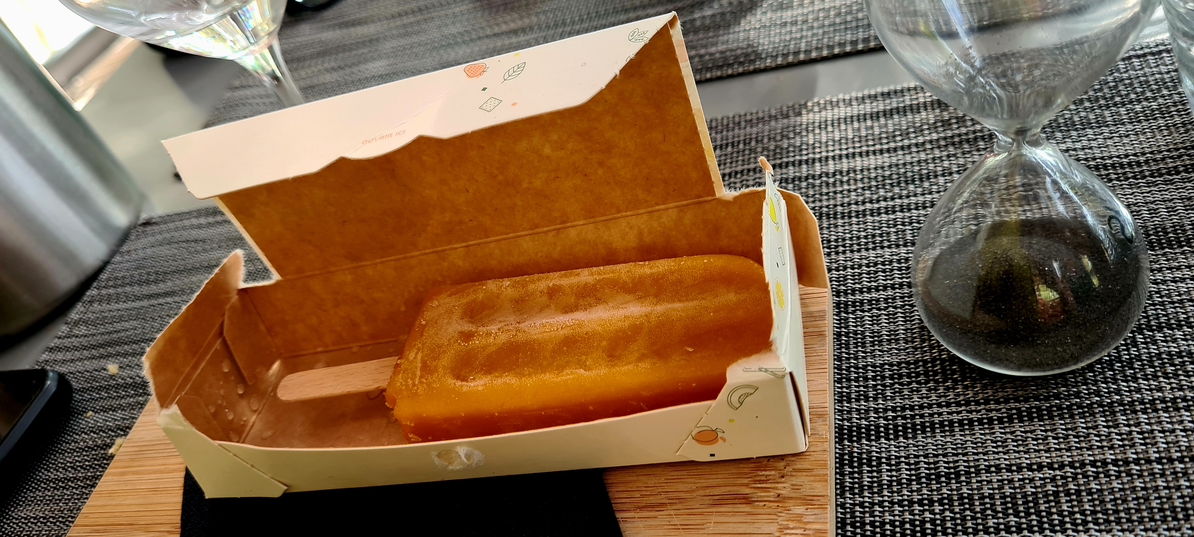 Très bon, très frais, Mais un peu trop timide sur les épices : j'ai ajouté un tour de poivre sur la mousse de chèvre au sorbet de roquette (mmmmh !), et je n'ai pas trouvé le coriandre sur dessert coco-coriandre (dommage !)