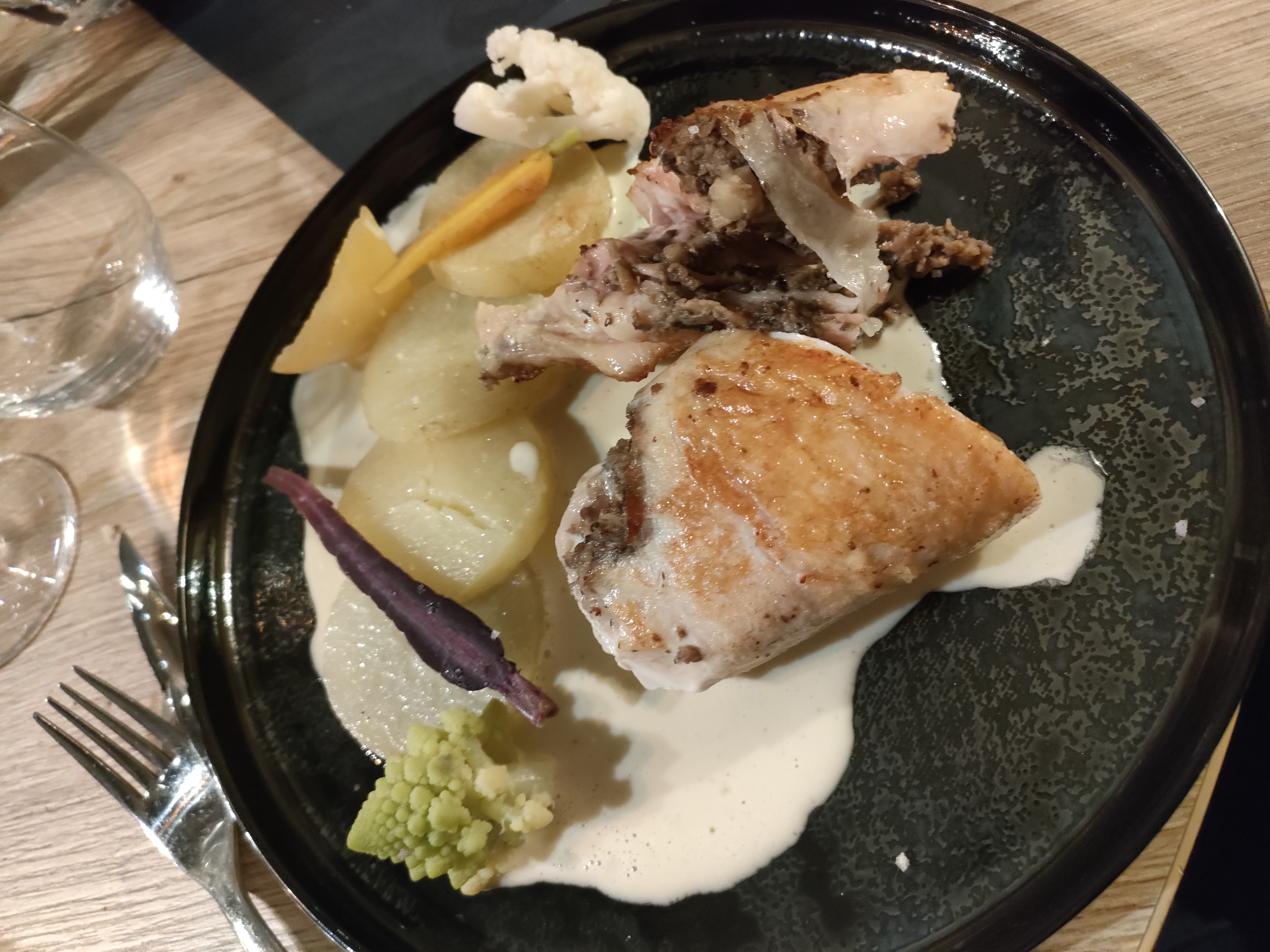 Posté le 05/05/2018 à 15:56"Super cadre !!! Bon accueil et bonne ambiance. Super bon mais il faut bien l'entrée et le plat pour se rassasier. Belle présentation. Le service était long mais a priori un four est tombé en panne, il est fort probable que sans cet aspect le service soit fluide. A retenter ! Par ailleurs, pour cette attente nous avons eu l'apéro offert, je trouve ça bien honorable."