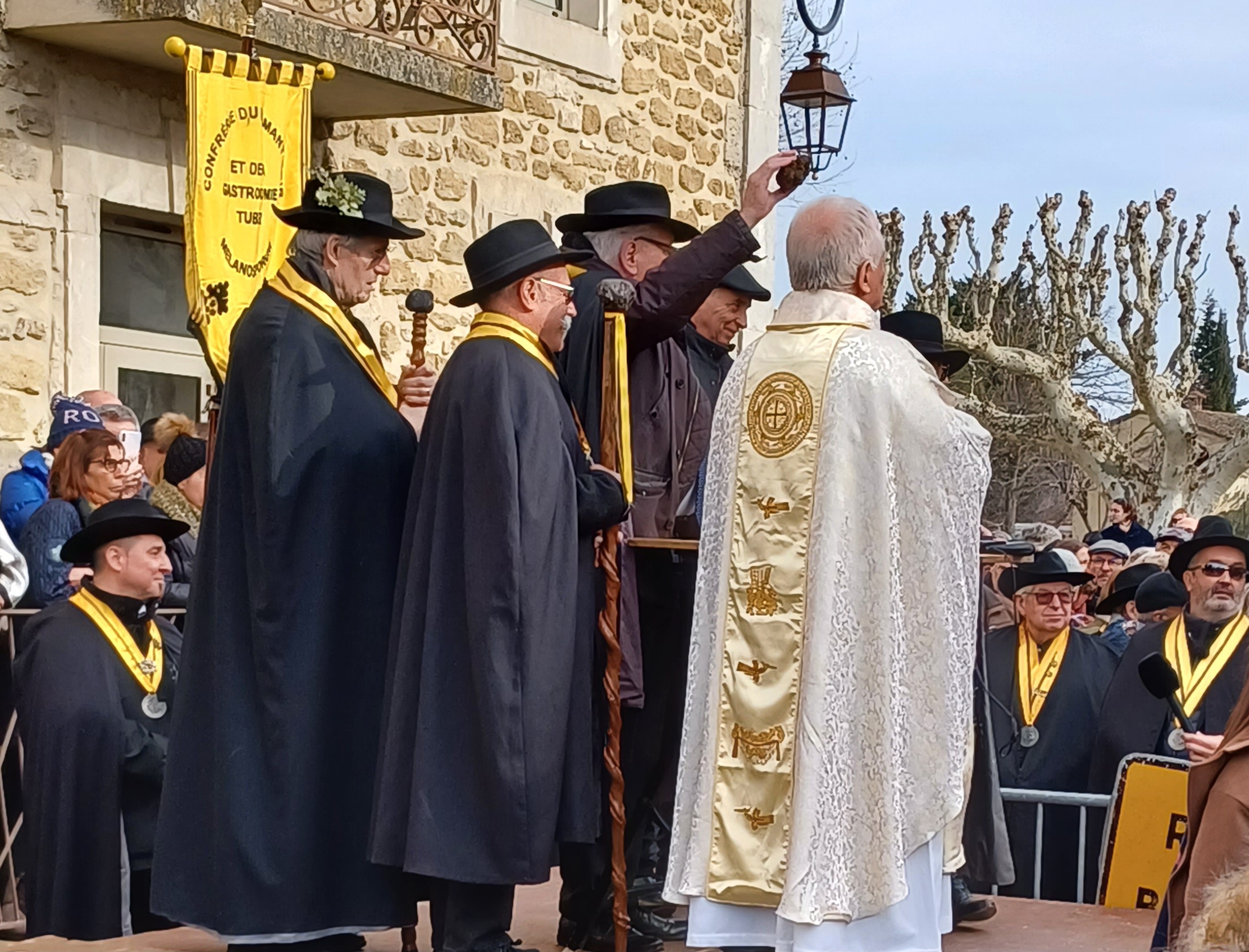 Habitants du Vaucluse, nous avions RDV avec des amis Drômois pour faire le marché de Richerenches en ce samedi matin. Ils m’avaient devancé en réservant une table à L’Escapade que je ne connaissais pas, passant pourtant des dizaines de fois par an dans Richerenches avec mon vélo, mais sans trop m’écarter des axes principaux (juste parfois un petit stop au Provencal pour y prendre un café ou un rafraîchissement). Quelle découverte ce menu aux truffes proposé en cette période de veille de messe de la Rabasse ! Tout y était : accueil, ambiance, délicatesse et raffinement des plats, de l’entrée au dessert, avec les subtilités gustatives du Melanosporum au centre du jeu ! Les choix ayant mixé viandes, poissons et brouillade en plat principal, les conseils avisés de la maîtresse de maison, Sandrine, me firent choisir un très bon Lirac Mont-Redon rouge (clin d’œil au domaine devant lequel mon vélo est aussi passé très souvent en venant de Tavel) qui s’est accordé avec merveille à cette diversité, d’autant que personnellement je n’hésite jamais à boire du rouge sur du poisson, pourvu qu’ils soient compatibles, et avec cette dorade truffée en croûte c’était parfait. Et que dire de ce millefeuille aux truffes … Le petit passage du chef à notre table a été fort apprécié, c’est toujours très sympathique de le voir en « chair et en os », impression et échanges ne sauraient mentir. Depuis le pied du Ventoux, Richerenches c’est la porte à côté, nous reviendrons avec grand plaisir, c’est certain et pourquoi pas même, de façon plus informelle, y faire un stop vélo un jour de grande virée pour y prendre un « en cas » léger ? Je suis certain que Nicolas, le Chef, aurait une idée à proposer ! Un ravitaillement « authentique » c’est tellement mieux que des barres céréalières 😉