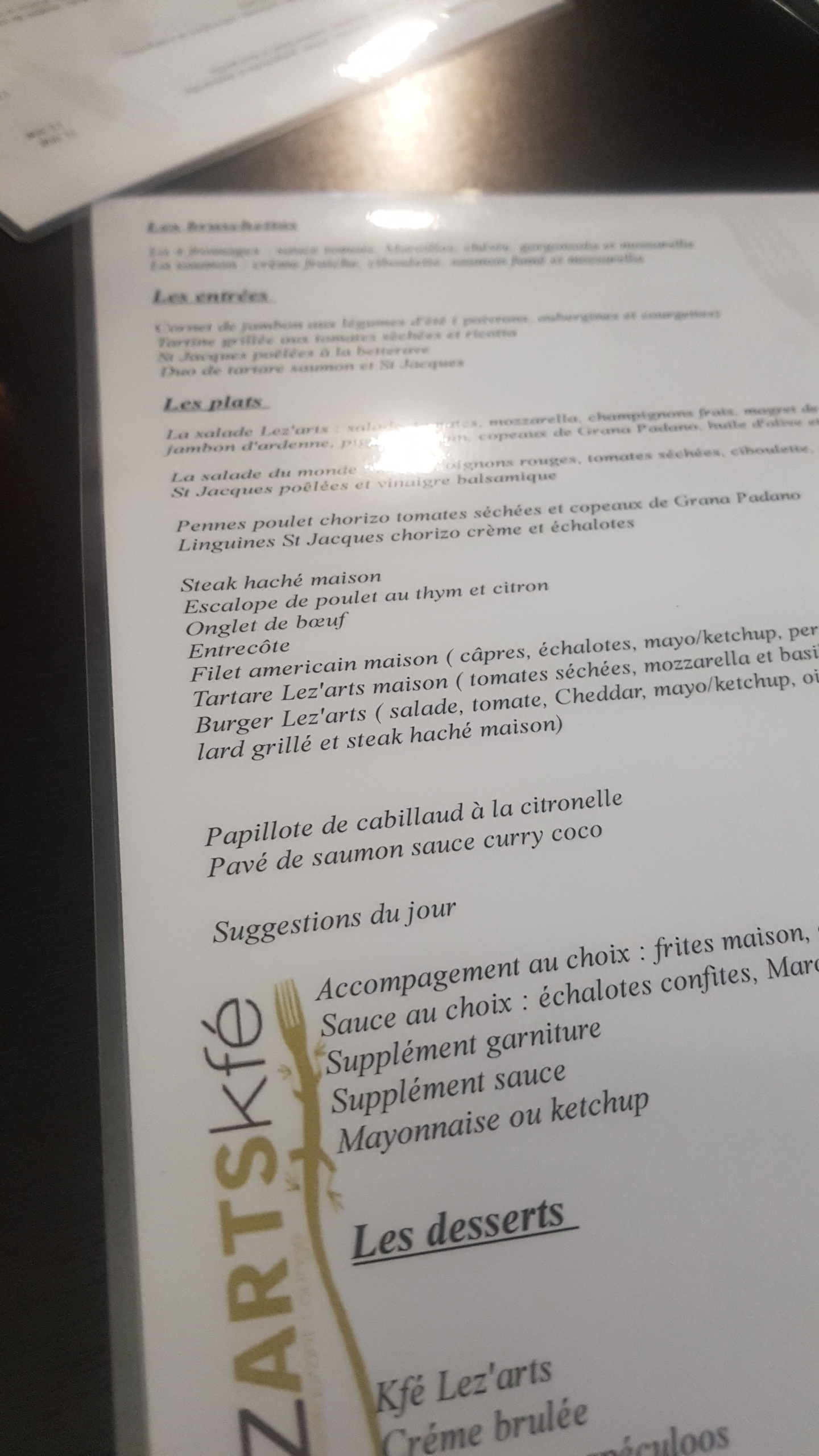 Nous sommes venus au lez art kfé , très bon accueil, cuisine correcte mais un peu cher au niveau du vin, et un doute sur le fait maison concernant les pizzas.