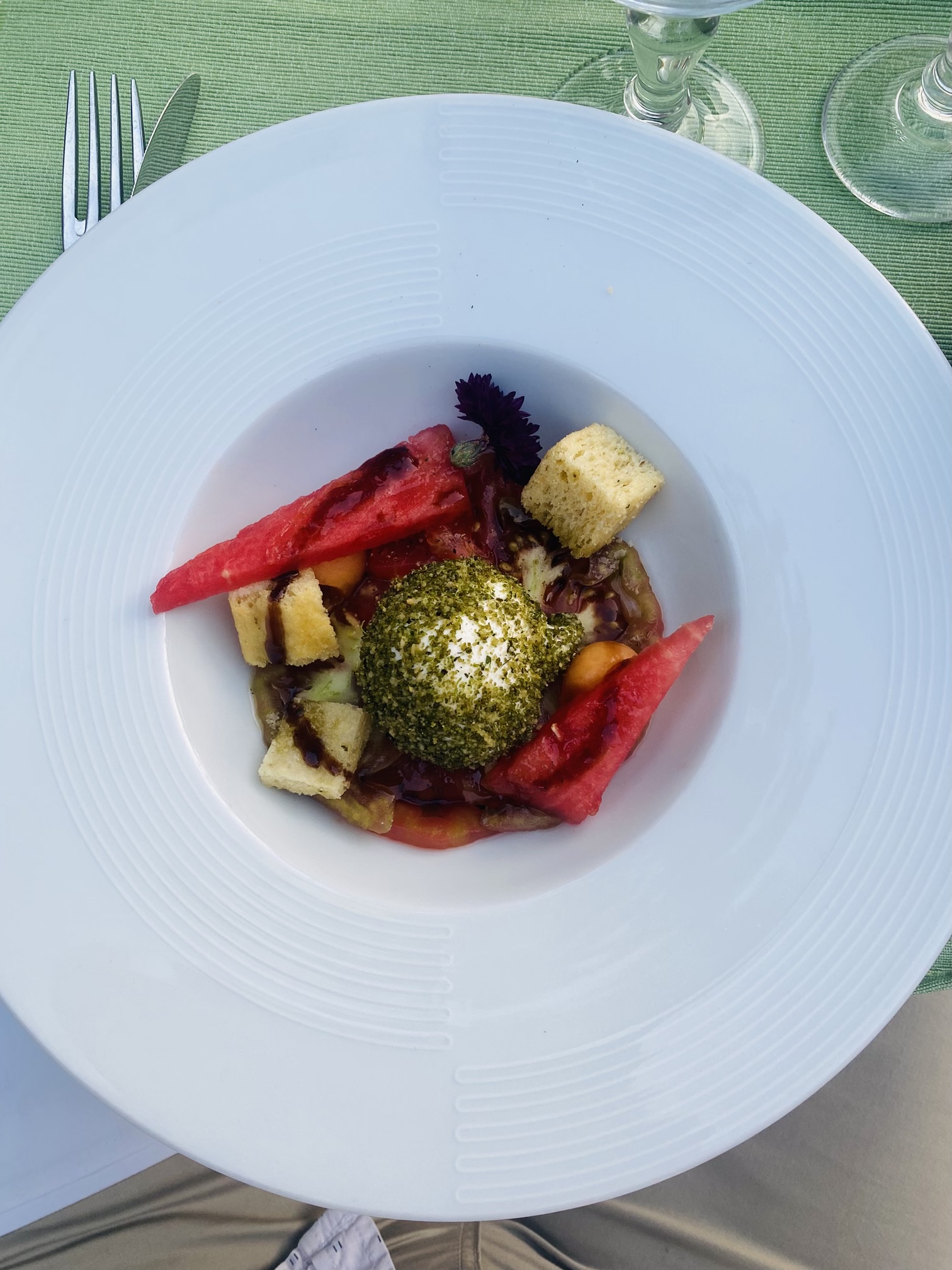 Je vais rêver de leurs souvenirs de courgette froide aux ravioles croustillantes de pelardon Je recommande les yeux fermés