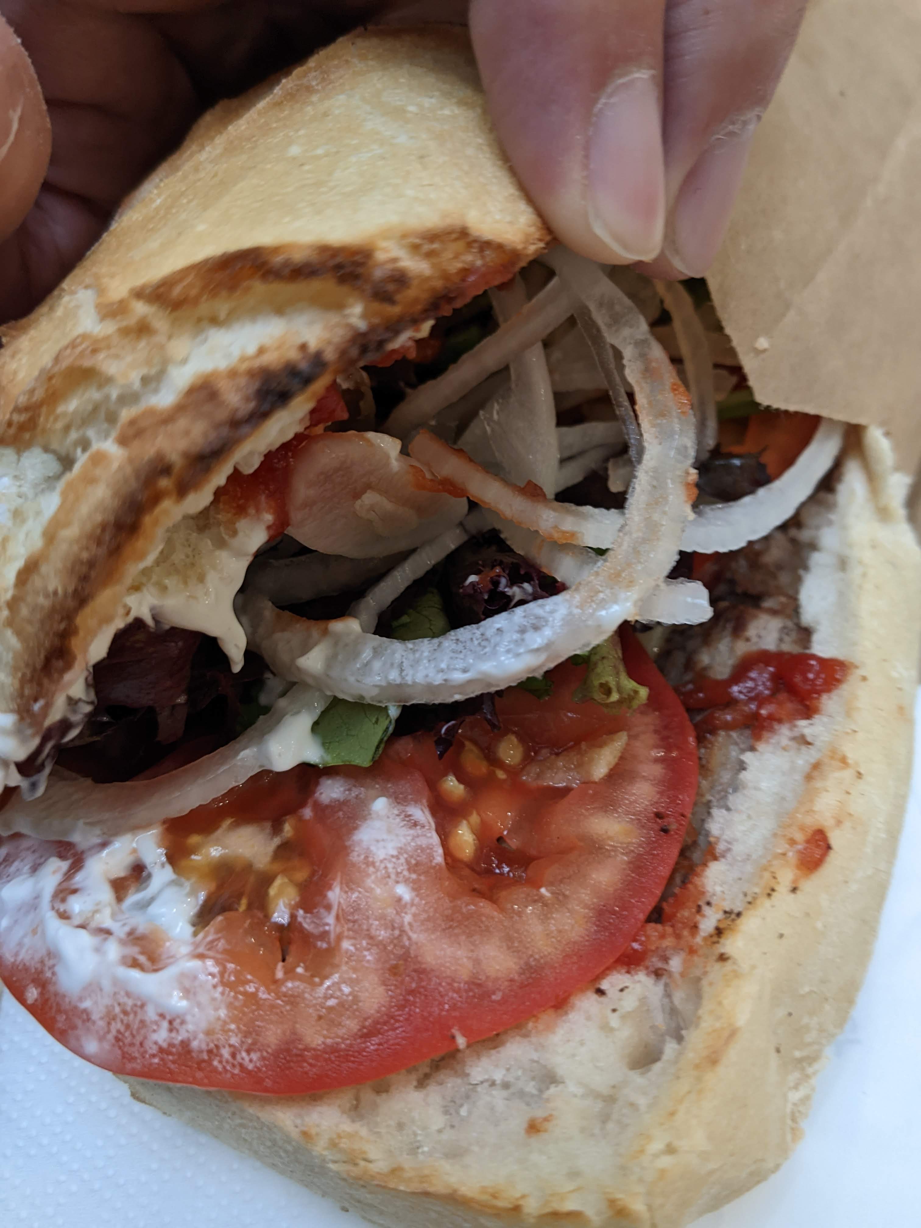 Mais , c’est incroyable ! Quelle délicieux sandwich au pain magnifique ! De la bonnes viandes des bons Crudités de la sauce comme ont aimes ! Au vue de la taille du sandwich tu en as large pour ton argent ! A consommer sans modération !