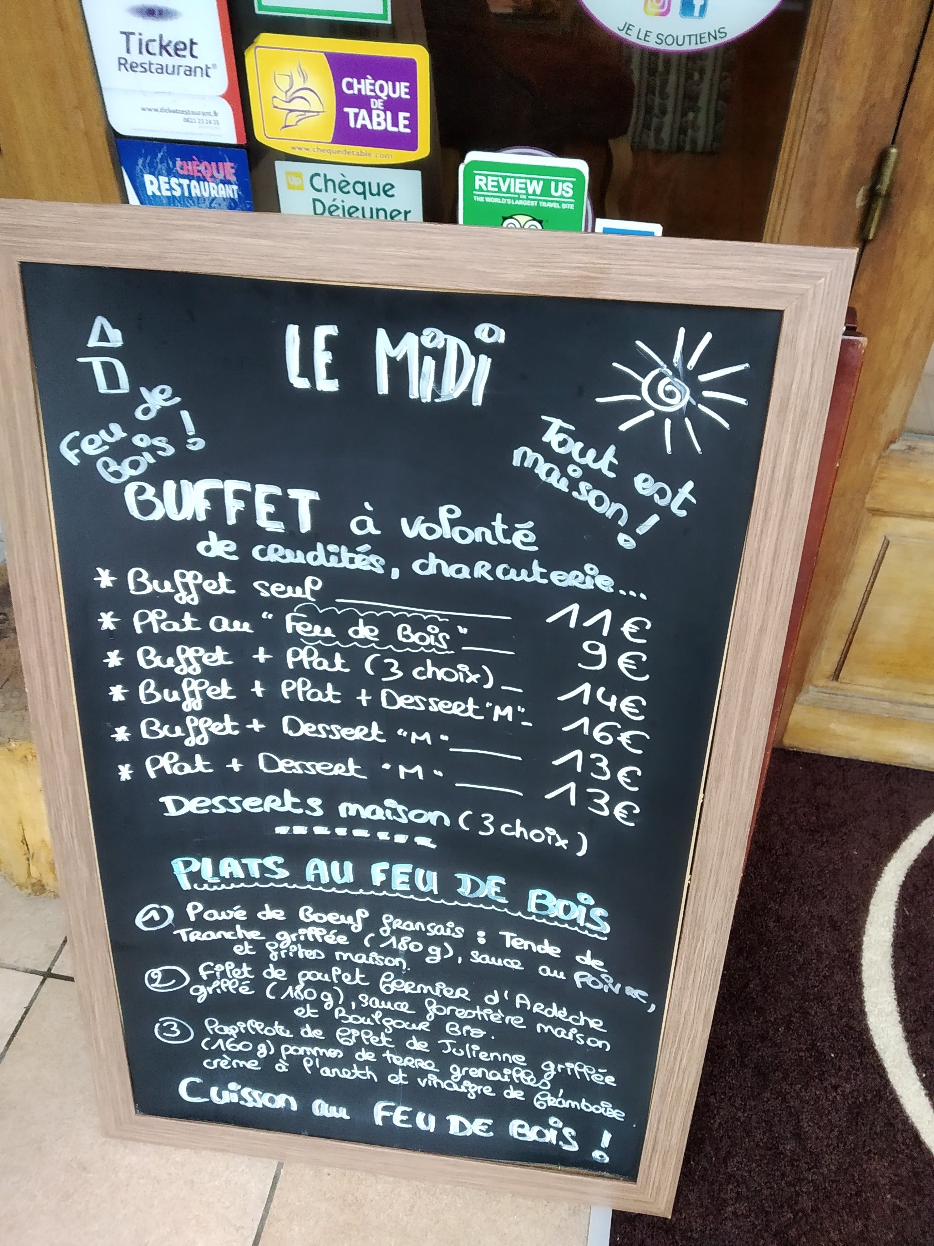 Posté le 26/08/2017 à 12:06"Les produits sont frais la cuisson des viandes au feu de bois est parfaite. Les desserts sont fait maison et sont vraiment délicieux"