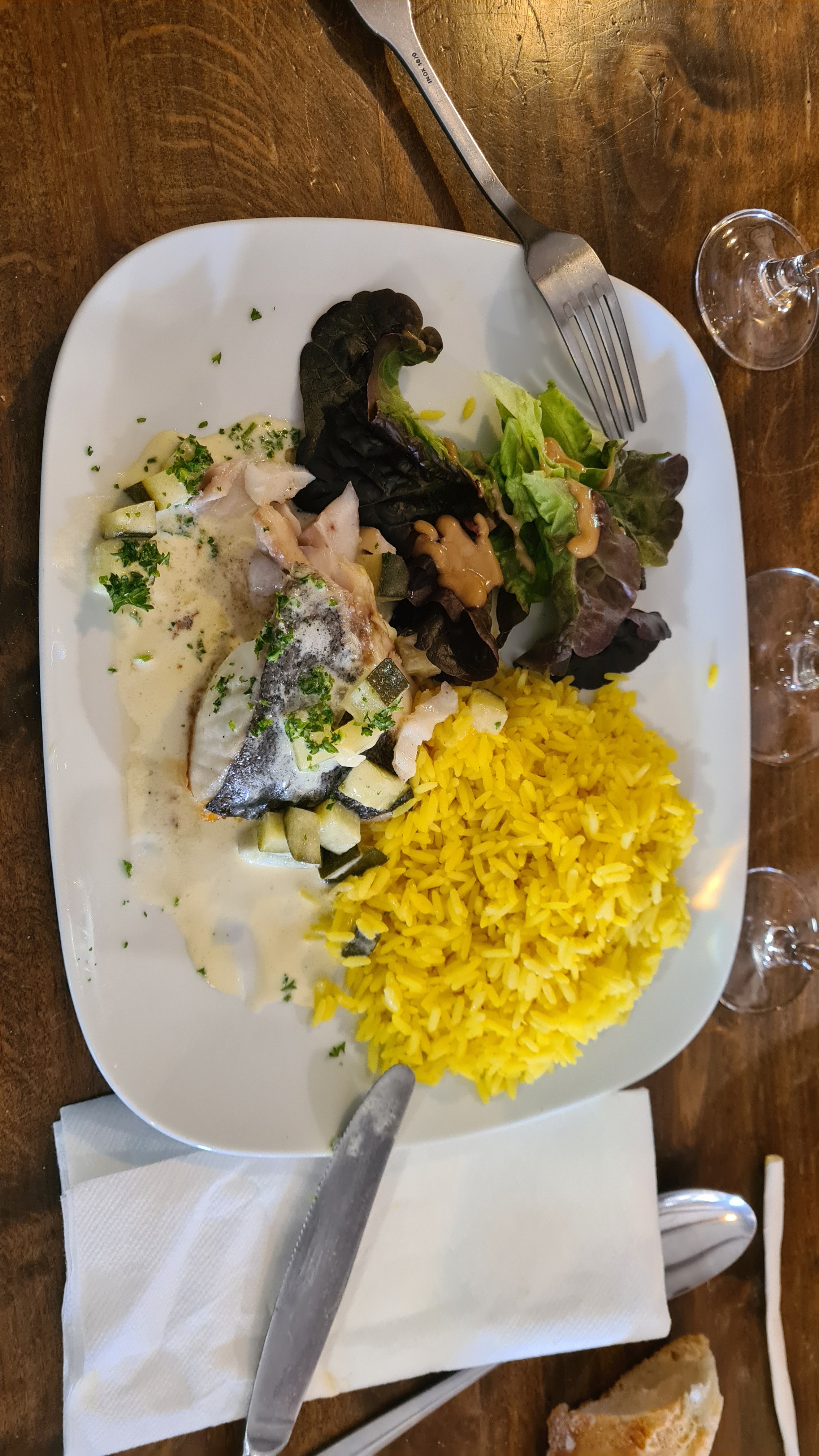 Très bon accueil , lieu sympathique et joli . Leurs plats sont très soignée 😁 Cuisson du poisson a la perfection 🤤 Ils connaissent leur métier et sa se voit . Y aller les yeux fermés