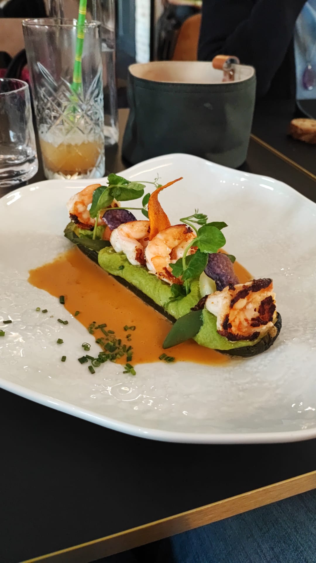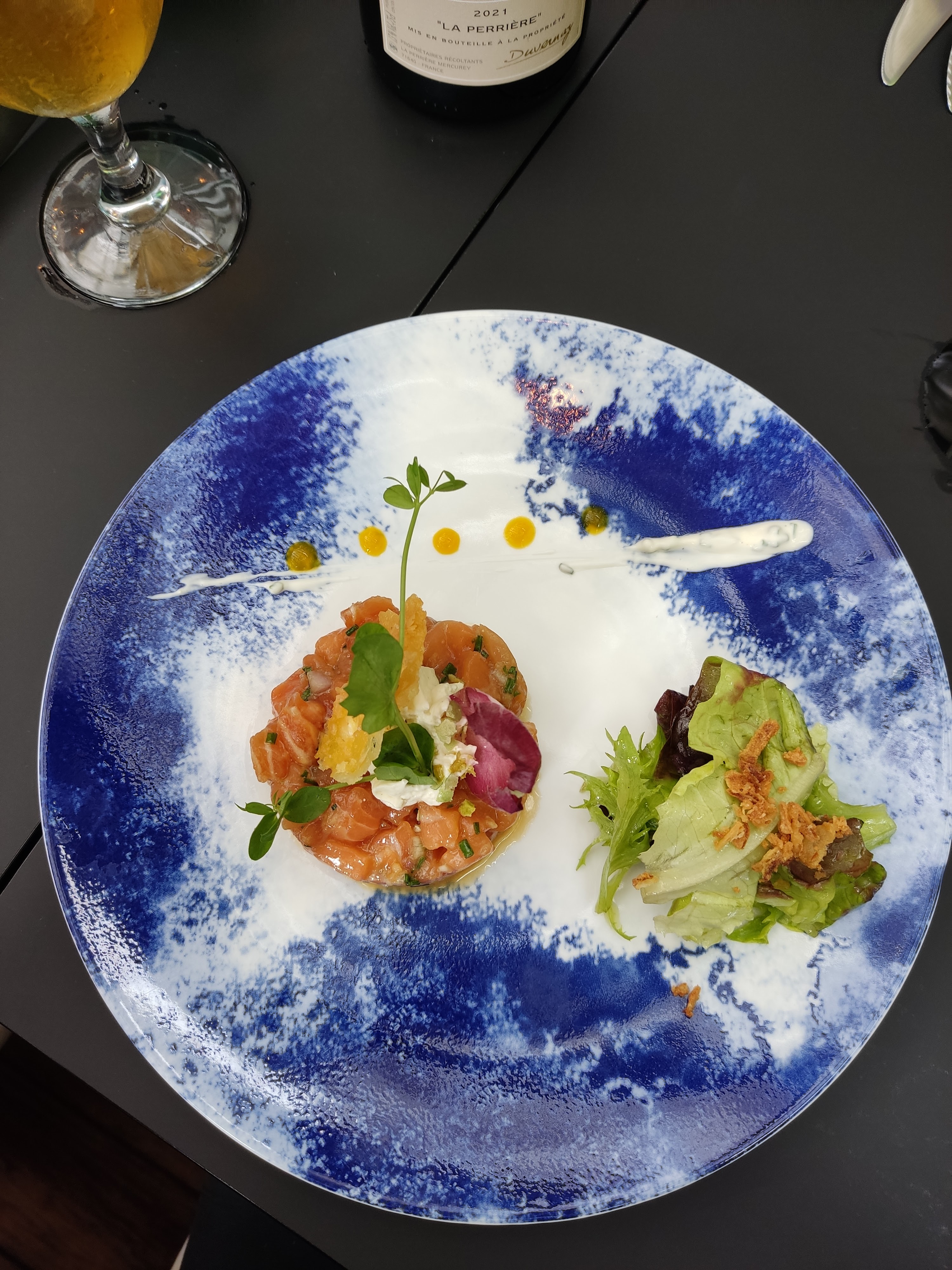 Nous sommes allés déjeuner un mardi midi, repas pris à la carte avec des collègues de travail. Ce fût délicieux, présentation soignée, cuisine inventive et fine avec un bel equilibre ! Seul bémol, le bruit dans la salle, nous avions du mal à nous entendre entre collègues et la lenteur du service où les 2 serveurs étaient débordés, les pauvres. Sans doute le revers d’être victime du succès. Nous reviendrons tester une autre fois