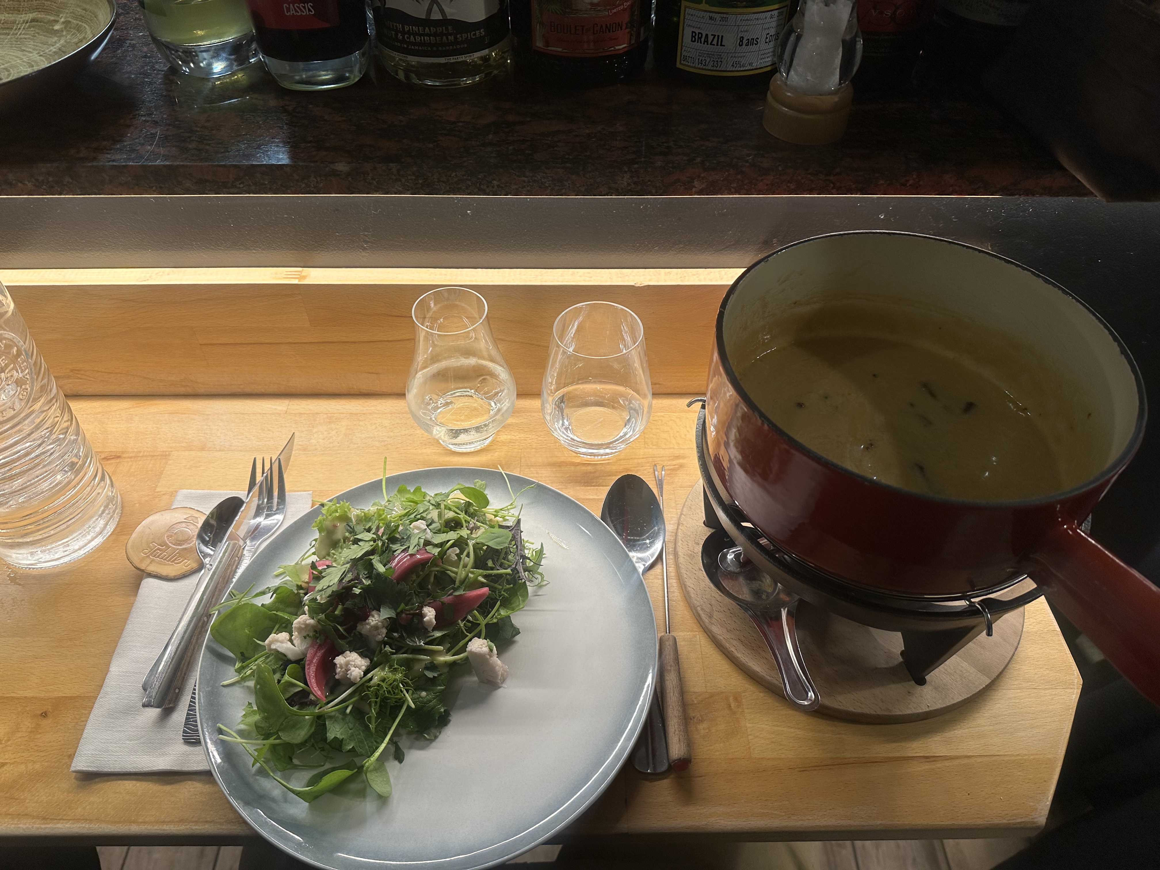 Parfait du début à la fin! On en rêvait depuis le début de notre séjour et par hasard au détour d'une rue, nous sommes tombés sur ce restaurant tellement mignon et avec une carte aussi originale qu'alléchante. Le personnel est très accueillant au naturel (sans en faire de trop), le service est impeccable. L'ambiance très agréable, avec une vue sur la cuisine directe, qui nous donne le sentiment d'être comme à la maison. Une Fondue aux cèpes incroyable et un desserr exceptionnel. Pour sur nous reviendrons si nous sommes de nouveau de passage dans la Région ;)