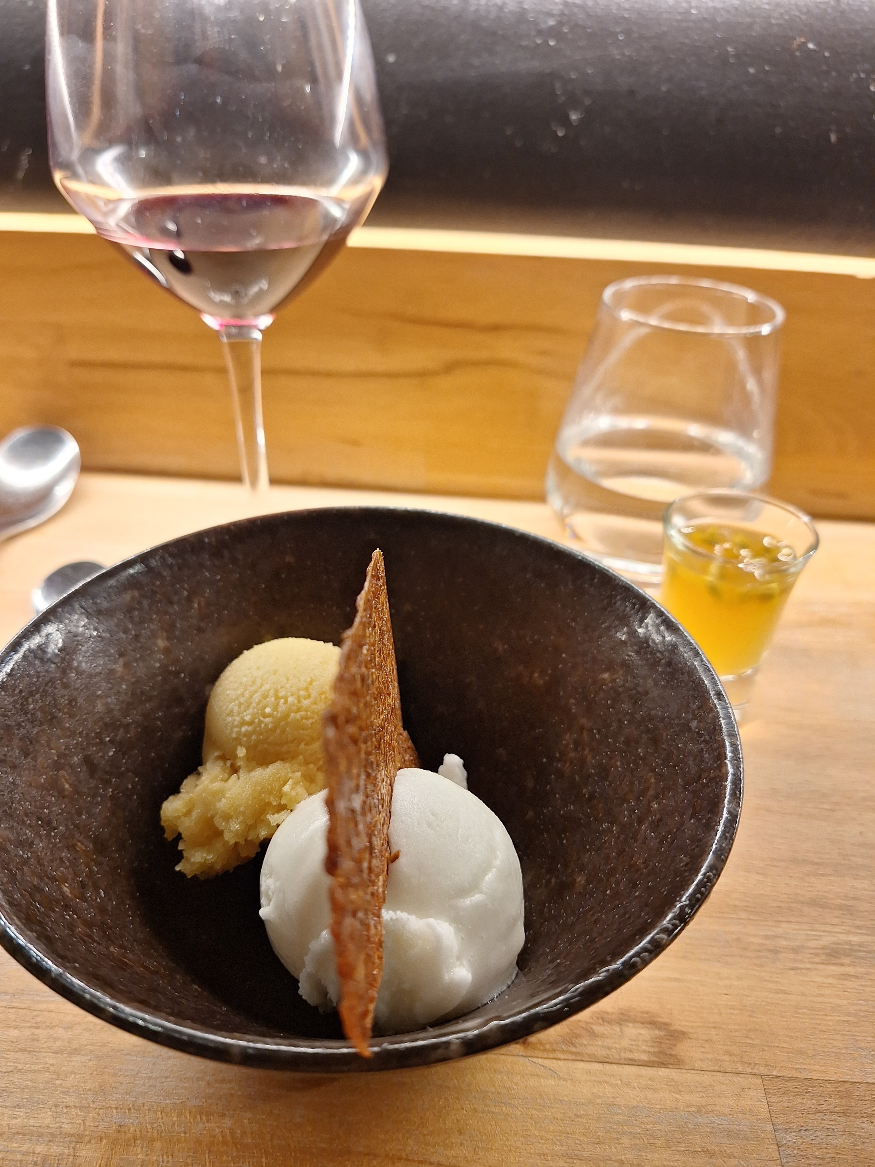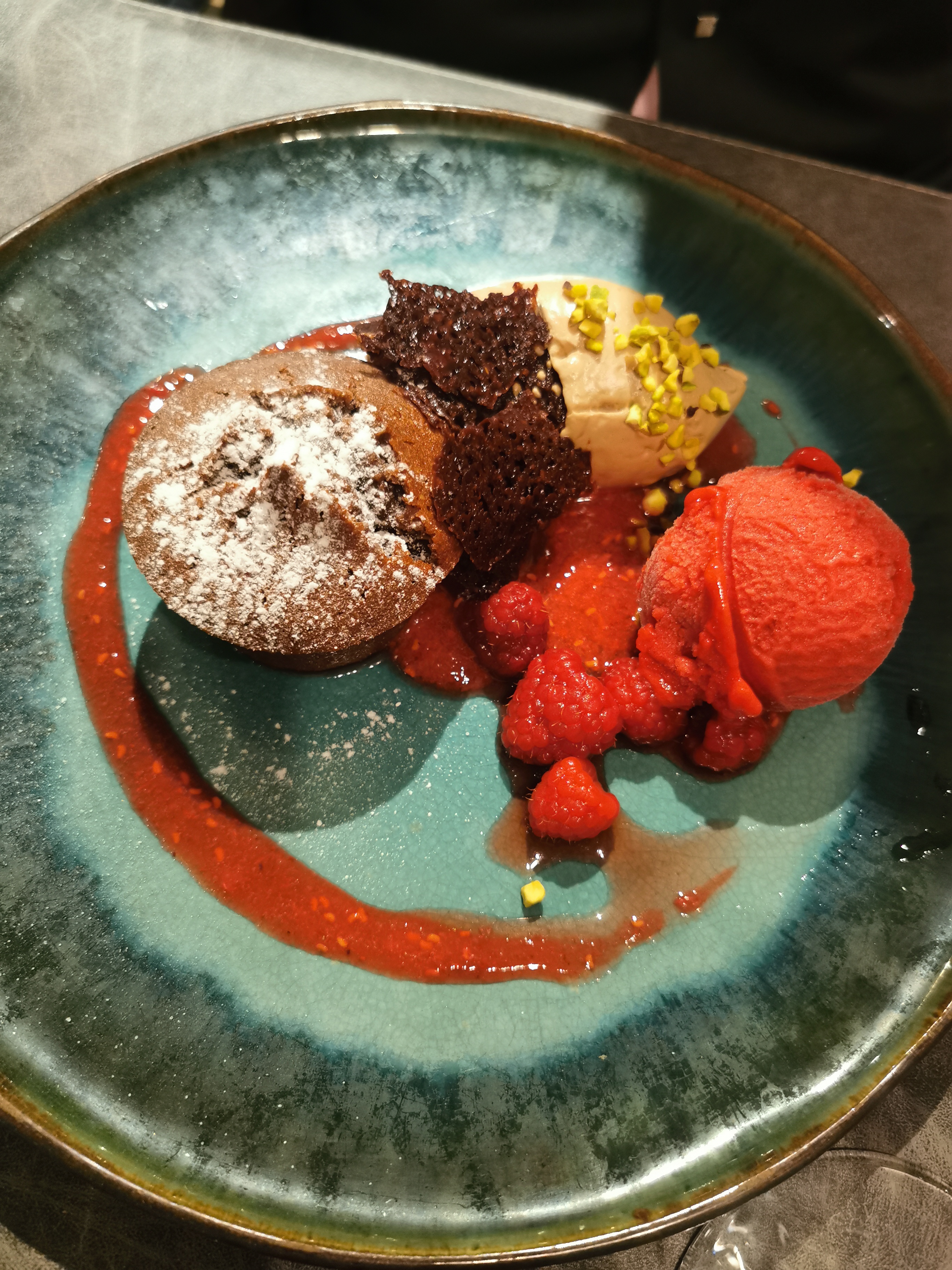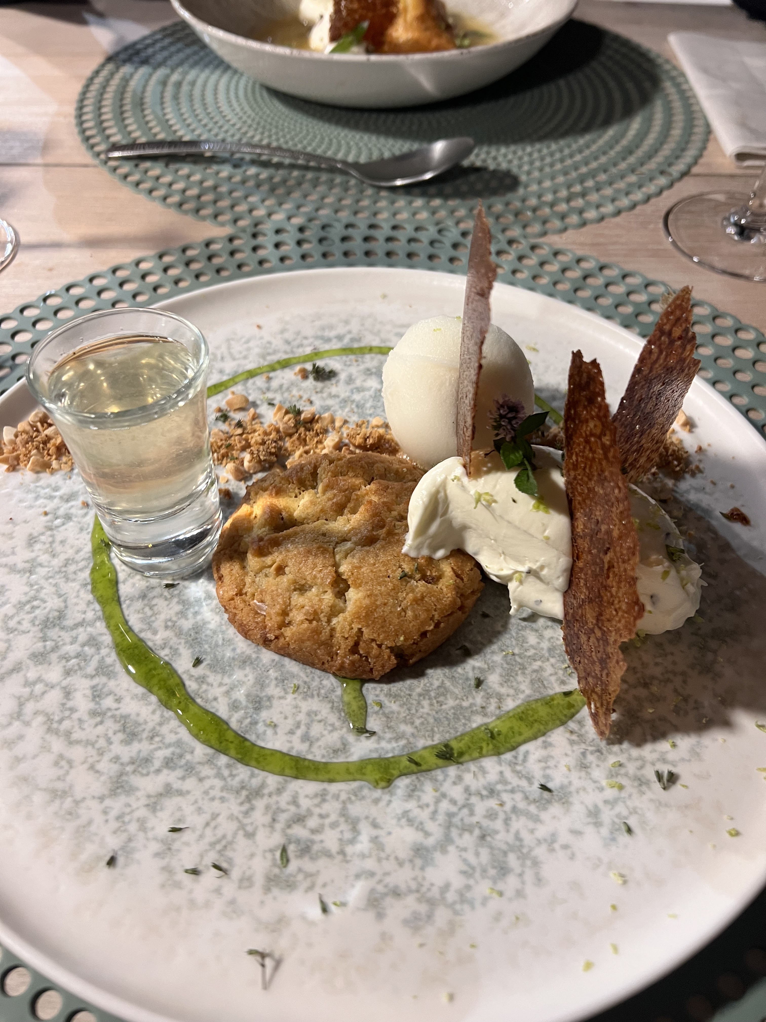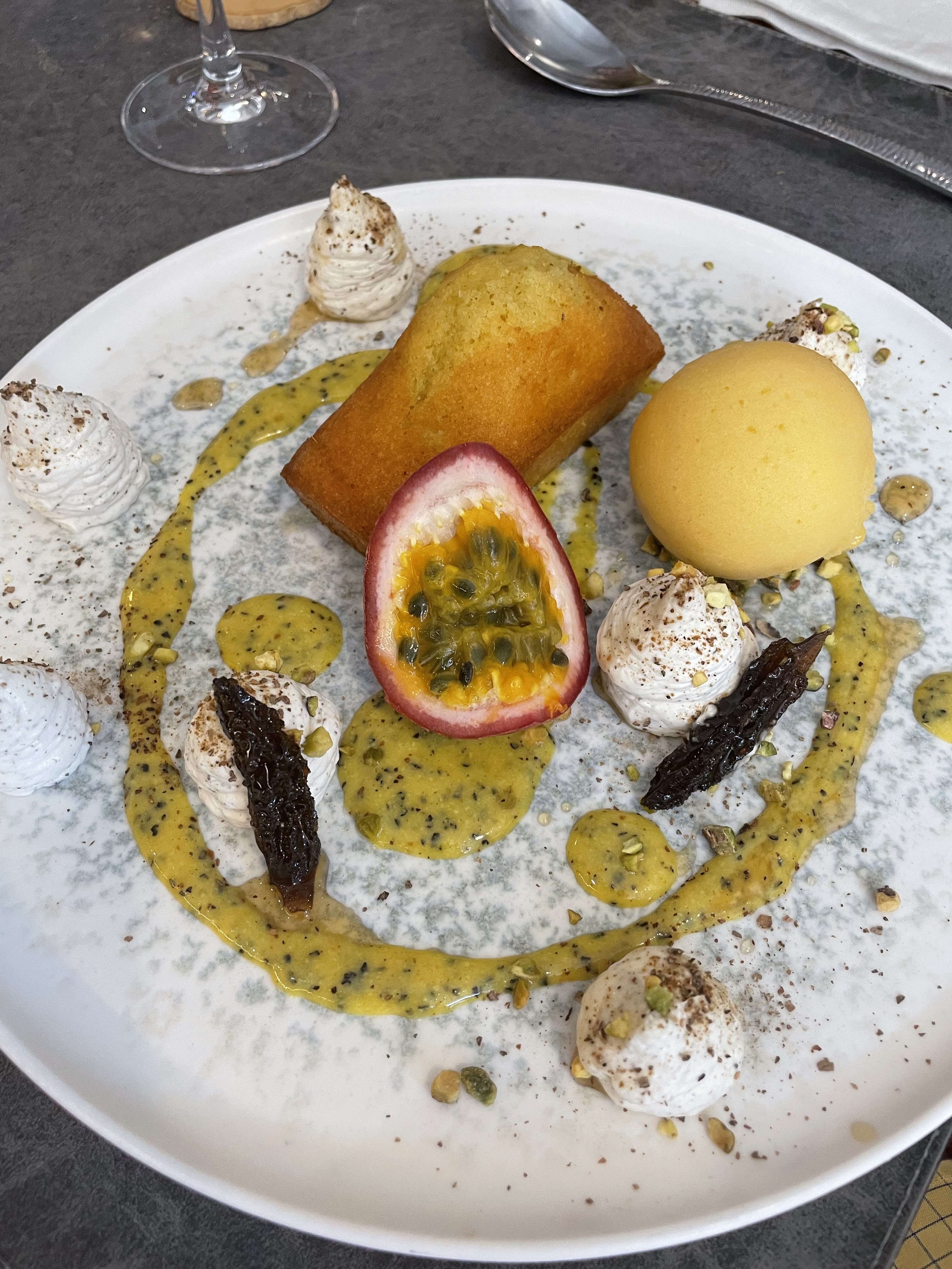Vous n'aurez que le dessert en photo mais tout le repas était parfait, accueil au top , plats divins je recommande vivement ce petit restaurant, par contre pensez à réserver. Car il est très prisé !