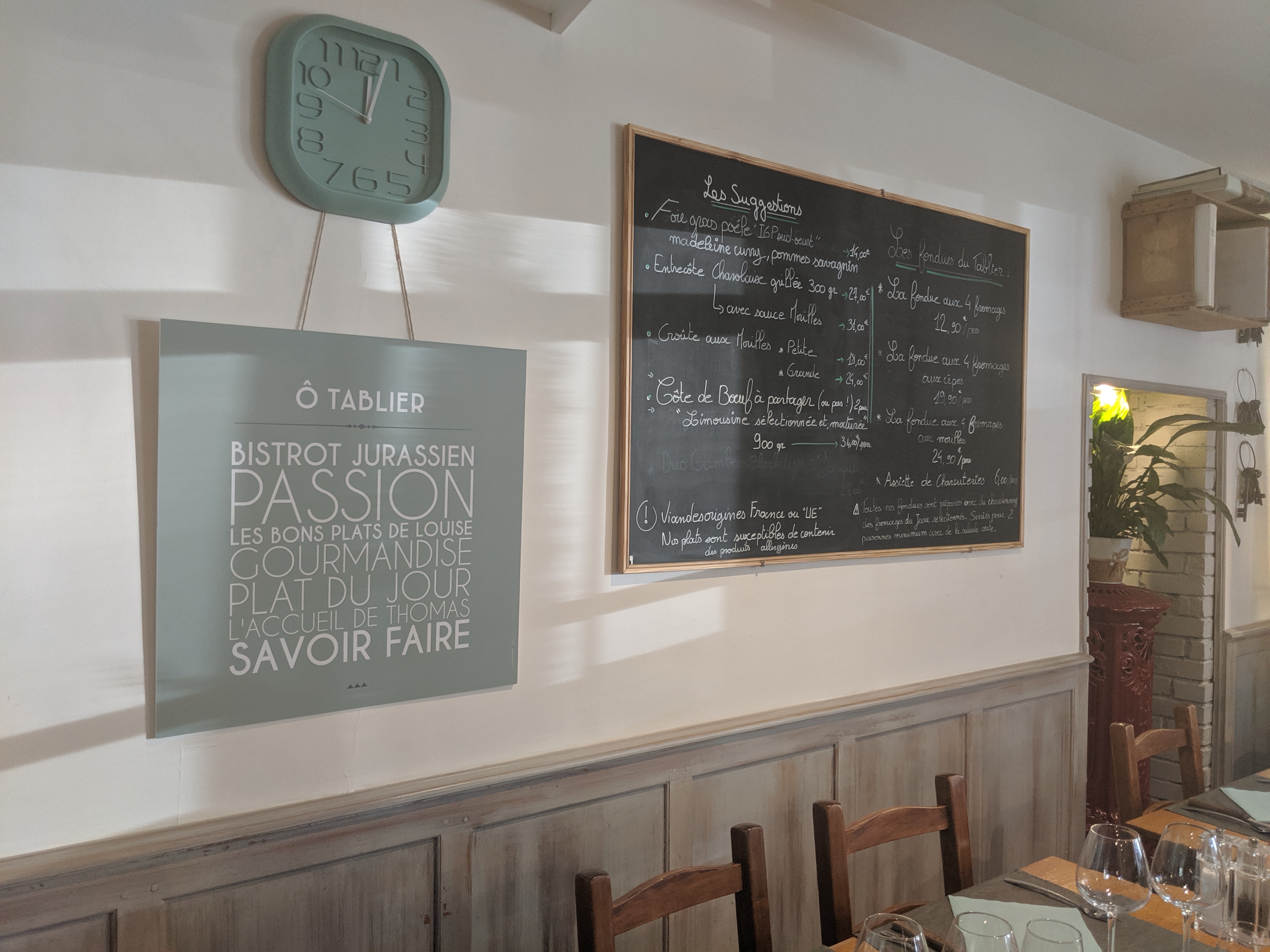Le meilleur resto de Lons, et de loin! Mériterait une étoile au Michelin, même si l'ambiance conviviale n'est absolument pas chichiteuse et se veut simple. Bref, le resto parfait! Nourriture rafinée, menu renouvelé régulièrement, Un couple de passionnés adorables qui savent vous conseiller, serveuse vraiment sympa. Vous ne saurez pas ce qu'est un bon resto tant que vous n'êtes pas allé Ô Tablier.