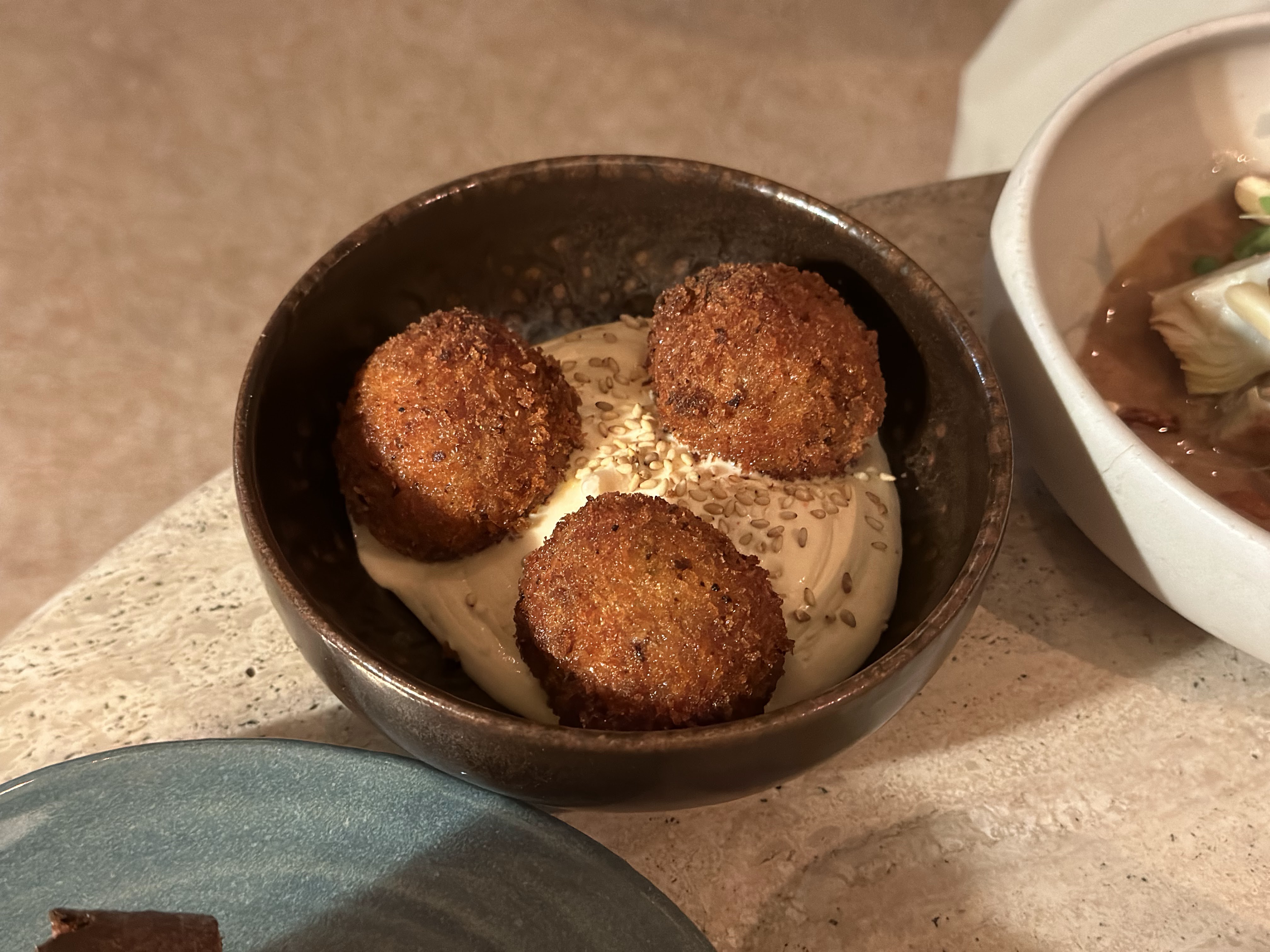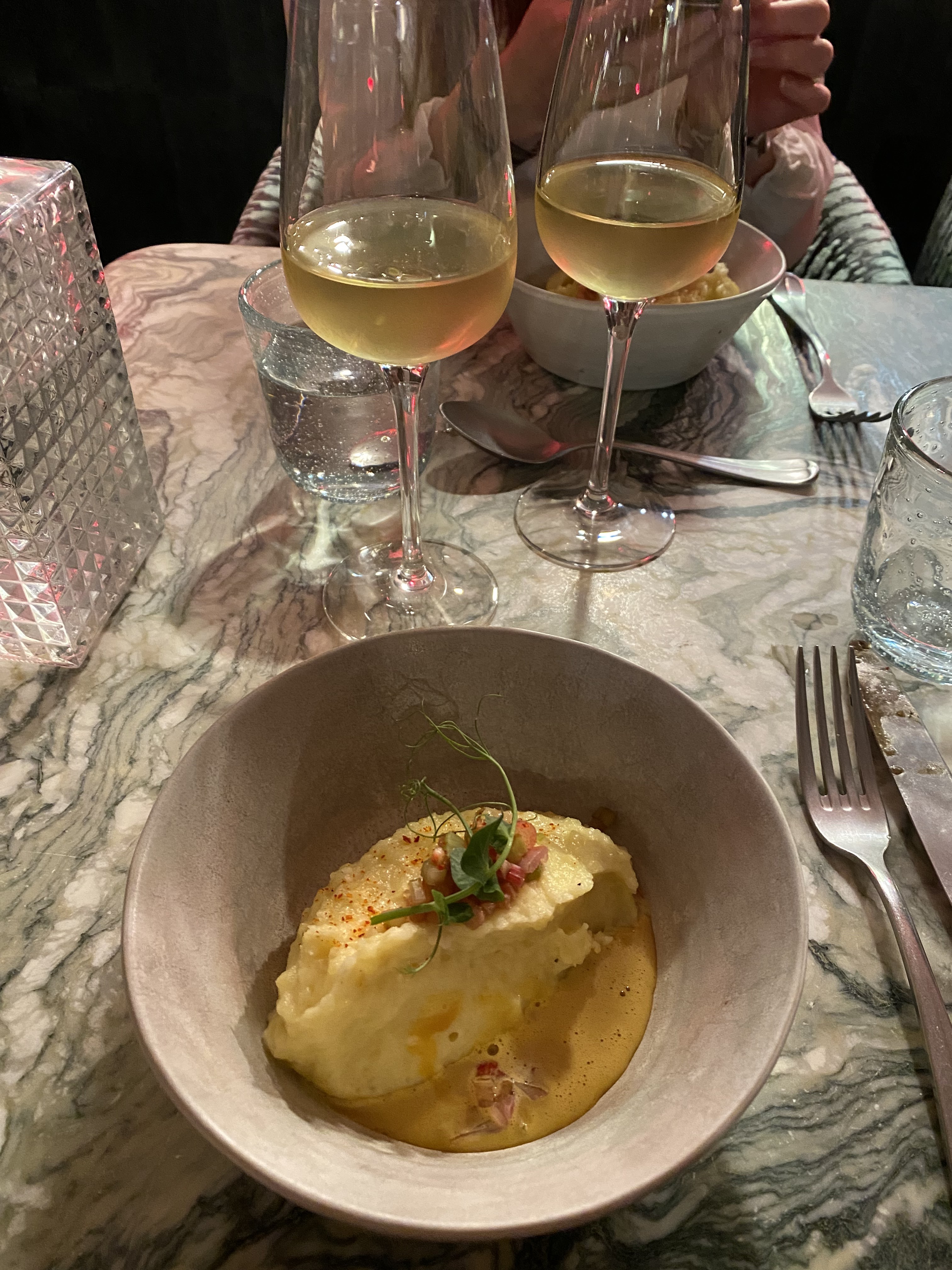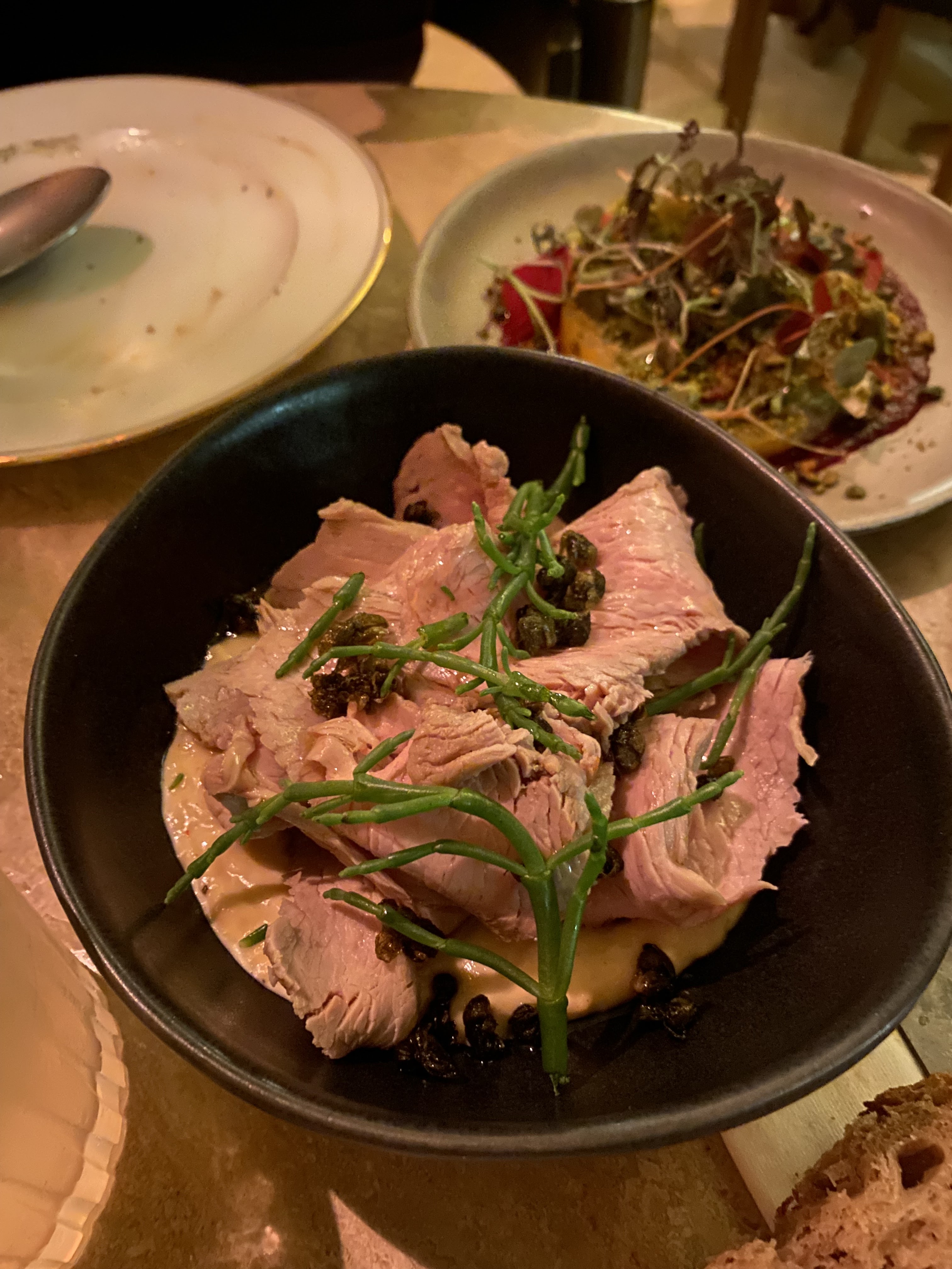 Je suis venue avec une amie diner, tout était absolument délicieux ! Mention spéciale pour le labneh, la truite, les croquetas et la purée, zéro fausse note jusqu’au dessert avec une tartin tatin aux pommes accompagnée d’une glace au romarin juste parfaite. Nous avons payé 5 plats et un dessert 66€, assez correct au vu la qualité des produits et de la cuisine. L’ambiance est très bonne, juste un petit peu bruyant, mais pas si dérangeant. Je recommande !