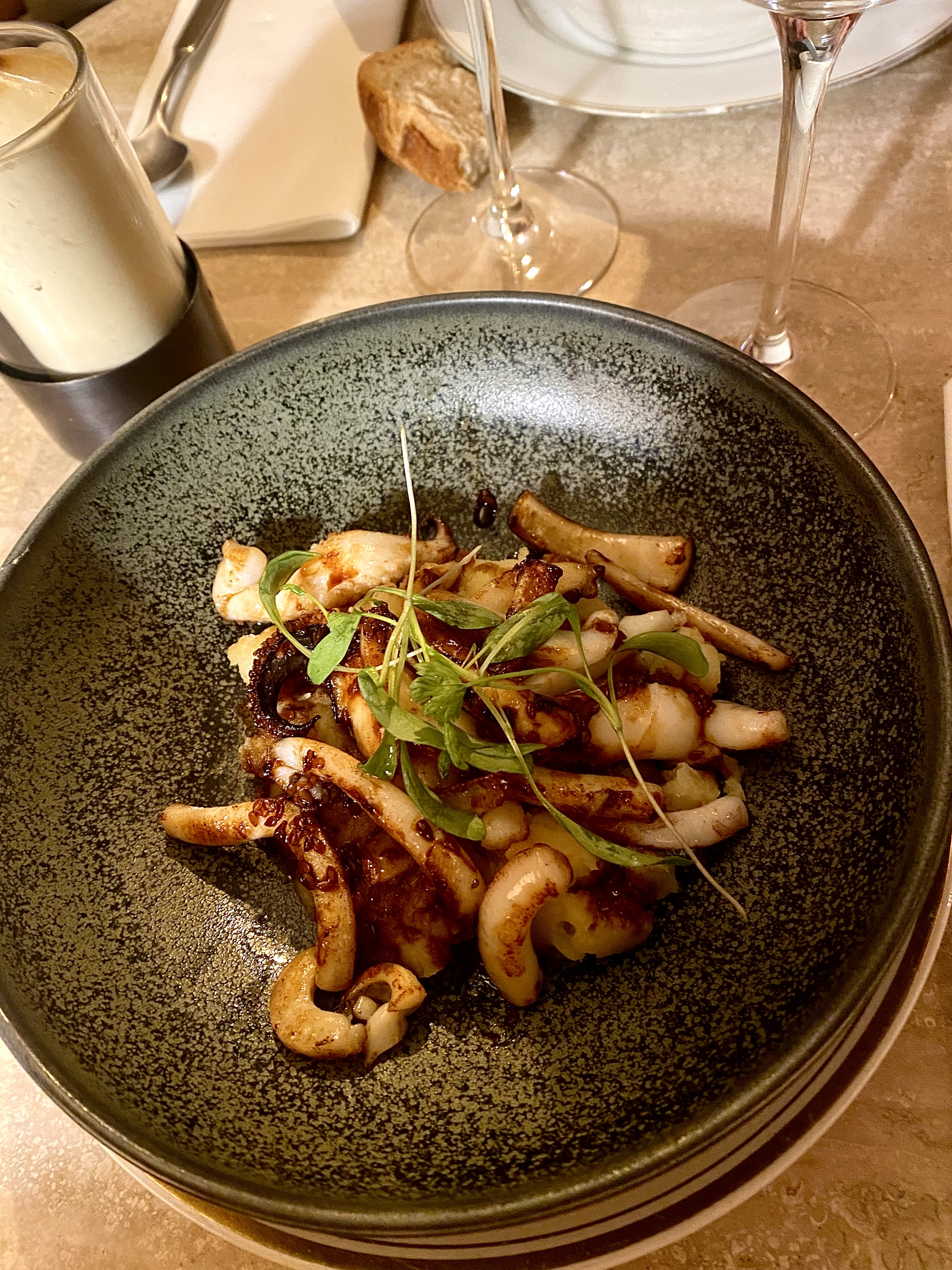 Nous avons déjeuné avec un bon ami hier. C'est chic à l'intérieur, pas trop bruyant, confort. Côte bouffe: c'est super bon ! Assez simple dans l'intention, des bons produits, des bonnes idées pour les accorder, et beaucoup de talent pour les préparer. C'est bon, relativement bien servi. Les entrées sont très bonnes, surtout les croquettas. C'est le prix d'un troquet, mais c'est le bonheur d'une bistronomie. Excellent. Allez y !