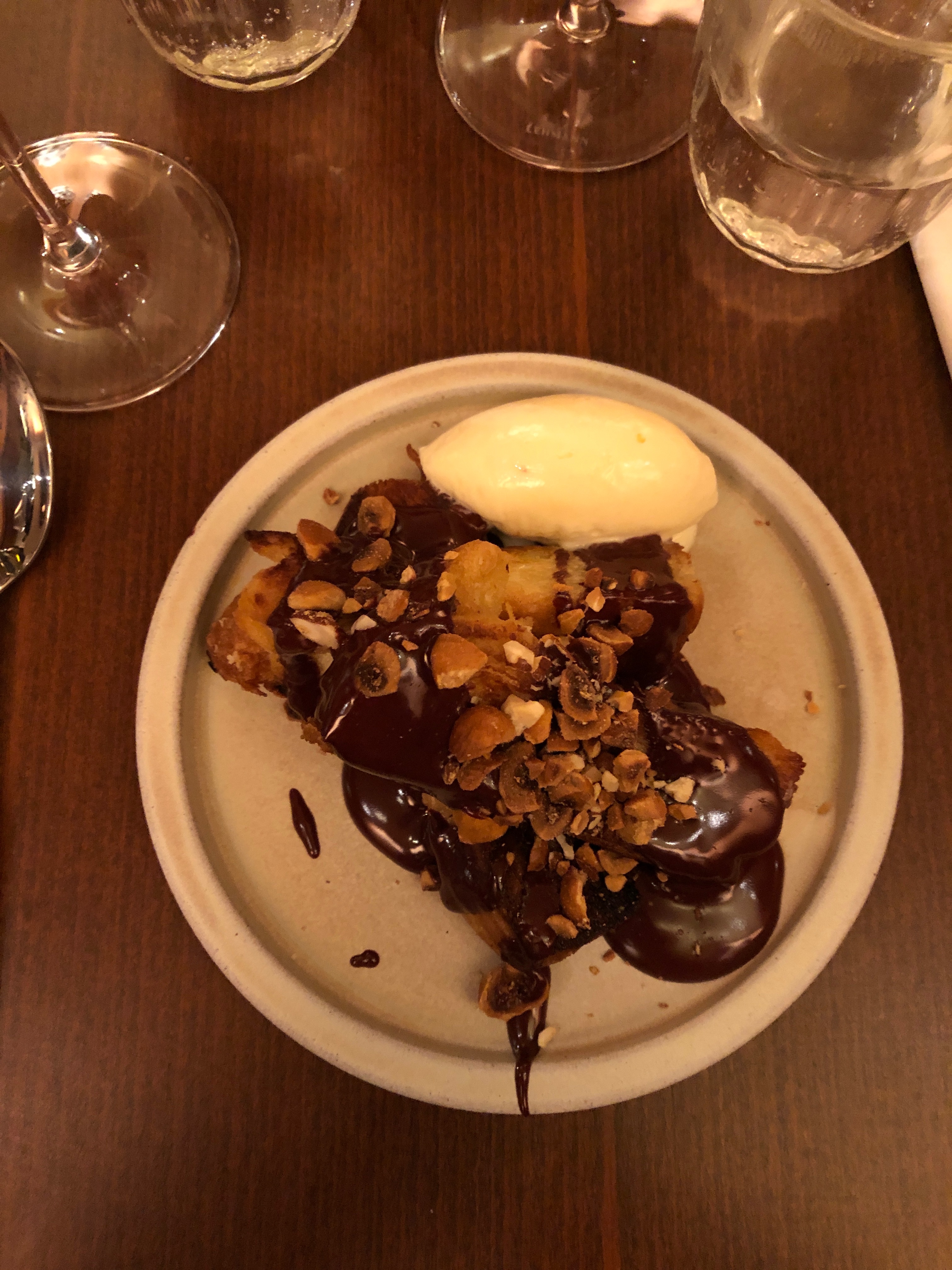 Nous avons dîné du côté bistrot, ils proposent également un menu dégustation dans le speakeasy du restaurant. Les deux salles sont séparées. Les plats sont travaillés et bons, j’ai beaucoup apprécié l’agneau confit. Cependant le service laisse à désirer, tous les plats ont été expédiés, le serveur est venu retirer les plats alors que je n’avais pas fini et literallement la fourchette encore dans la bouche. Une fois ça peut passer mais il a fait ça sur tous les plats. De plus ils étaient deux à s’occuper de nous sans se concerter, ils sont venus à tour de rôle prendre notre commande que ce soit pour les boissons, les plats ou les desserts. Bref, Ils sont jeunes je pense qu’ils voulaient bien faire mais c’est anxiogène d’avoir quelqu’un qui vous presse quand vous voulez passer du bon temps !