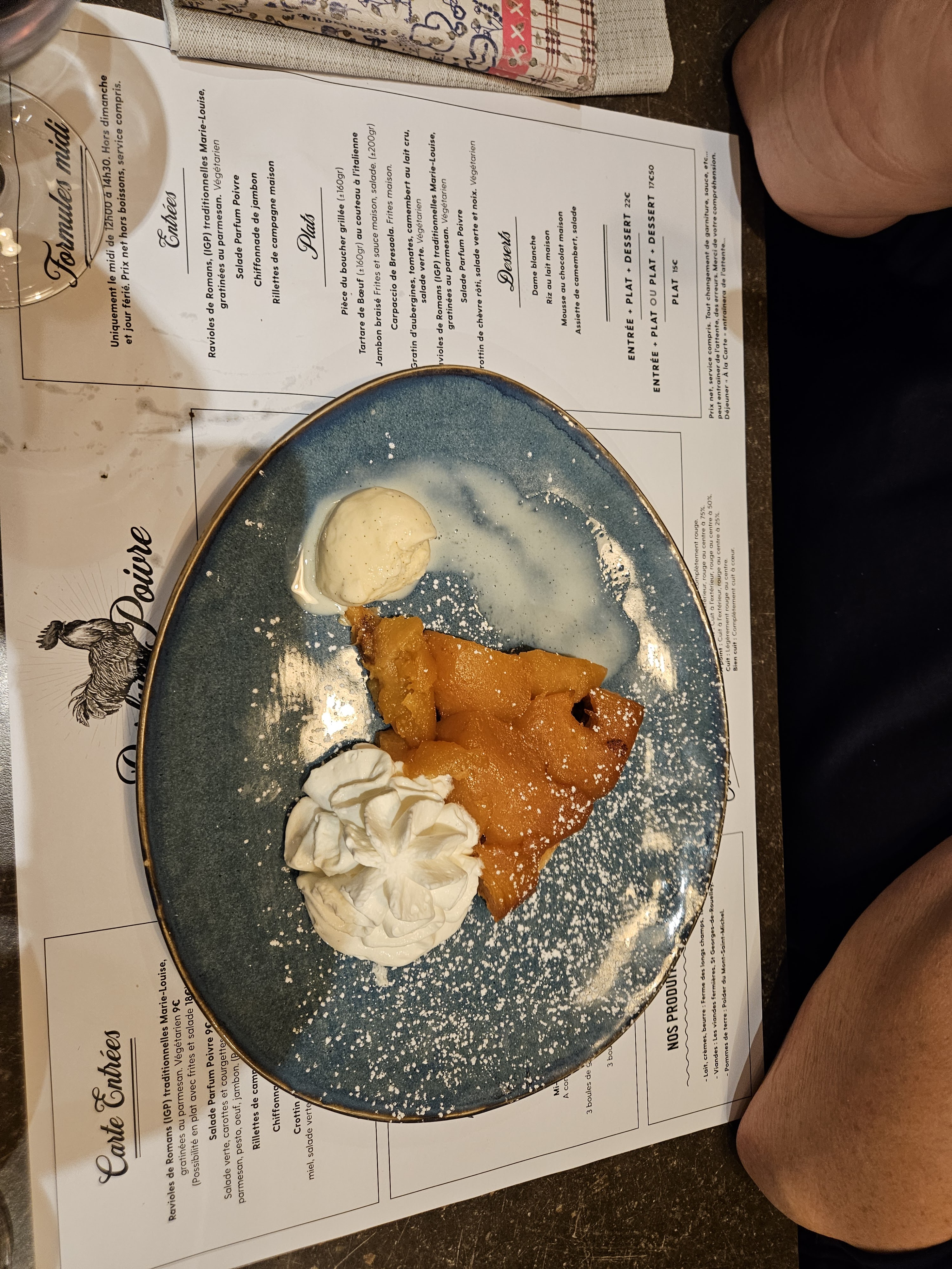 Posté le 26/08/2020 à 00:14"Arrivés sans réservation, on s est arrangé pour nous trouver une table. Accueil sympa, super cuisine, on s est rė ga lės!! La planche à partager était à tomber, le carpaccio de bresaola et la tartare au camenbert aussi!! La mousse au chocolat au caramel beurre salé. .une tuerie! Super adresse."
