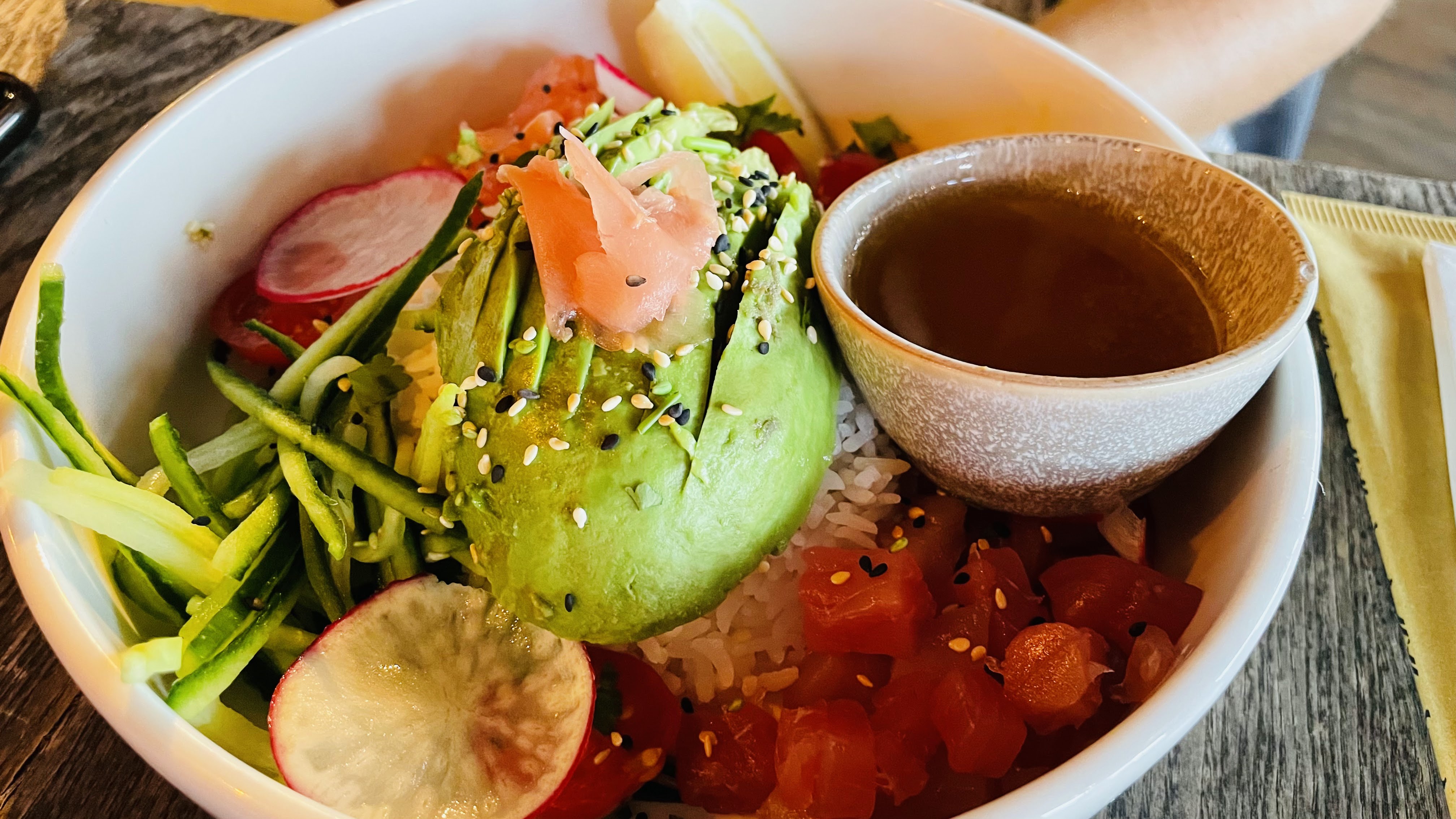 Posté le 25/07/2024 à 18:31"Bon petit restaurant avec vue sur le port . Le personnel est sympa et les produits sont de qualité. Les prix un peu cher tout de même . J’ai pris un poke bowl saumon et je trouve qu’en quantité il en manquait un petit peu. Mais très bon en bouche ( rajoutez en un peu svp) ☺️"