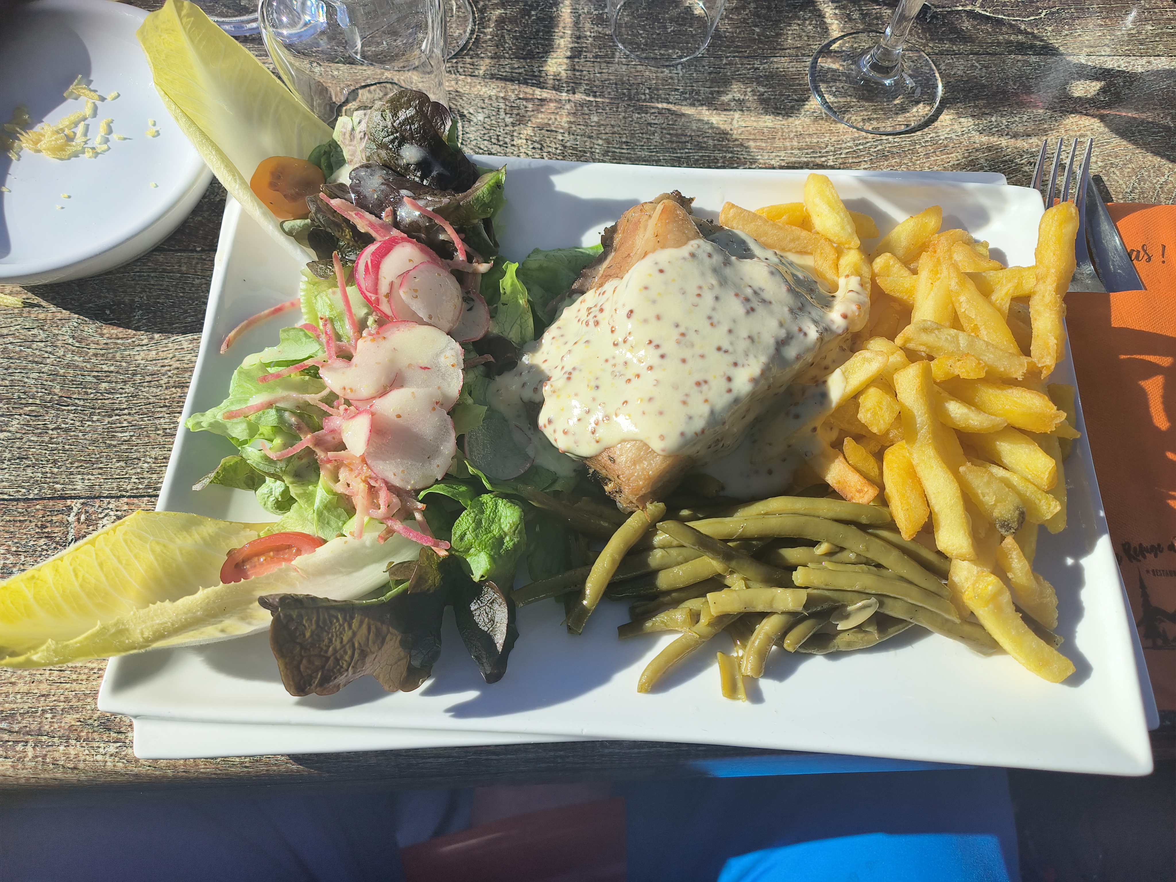 J'ai commandé une salade pour manger léger le midi, et à ma grande surprise c'était une salade très généreuse ! Pour une fois que c'est dans ce sens je n'ai rien à en redire, j'ai eu du mal à finir 😊. C'était très bon et le service très agréable, merci à vous pour ce moment sur un déjeuner entre deux pistes de ski.