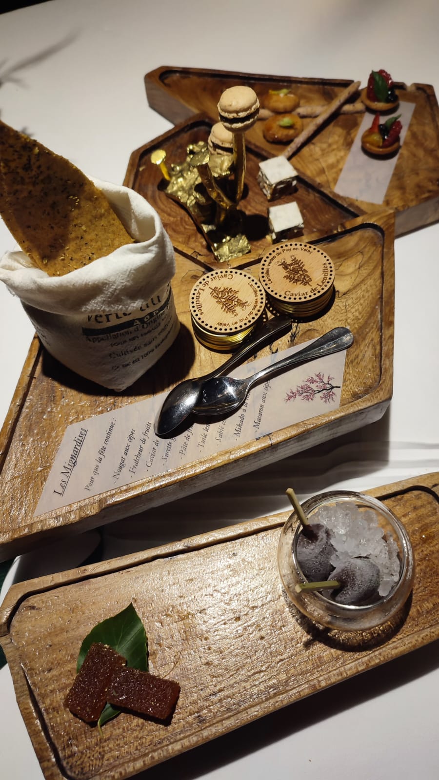 Quel voyage culinaire de saveurs et couleurs tout ses plats qui représentent la nature dans de superbes contenants et présentations dans un environnement exceptionnel merci à messieurs marcon mais félicitations à toute cette brigade il faut pas les oublier