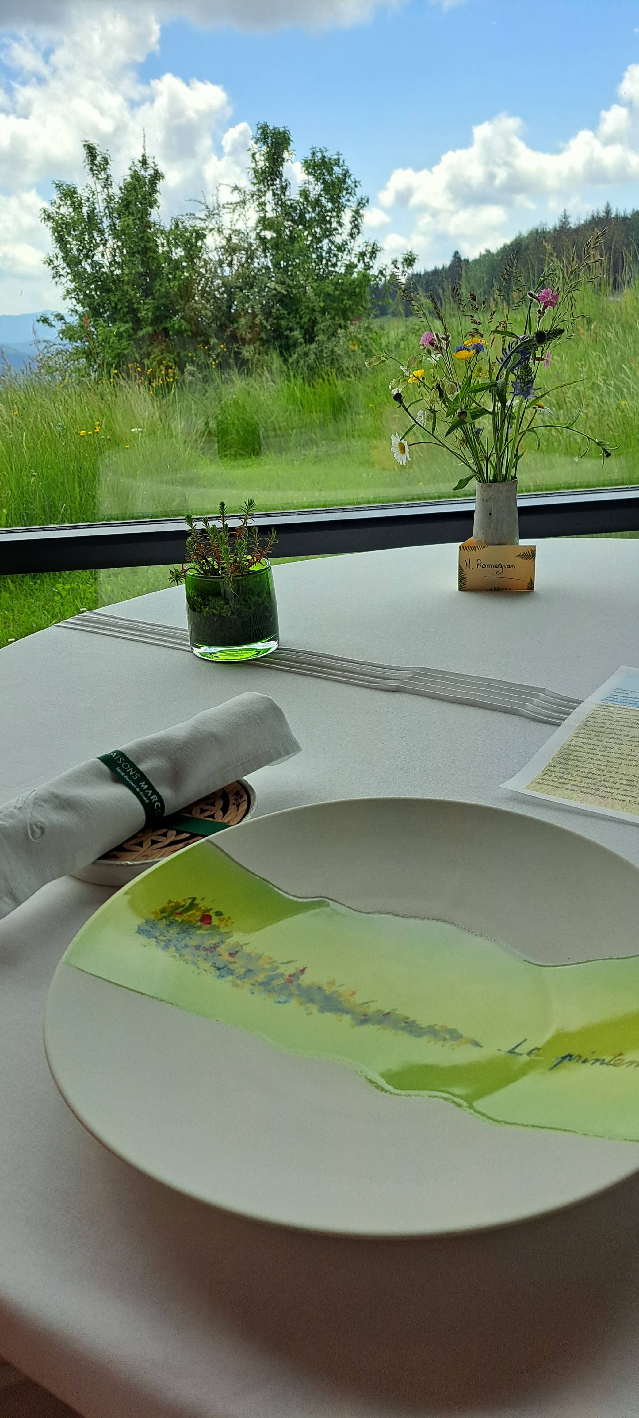 Nous avons vécu un très joli moment. Ce n'est pas un simple repas, c'est un échange, un partage, une promenade de découvertes à travers les différentes assiettes, le tout sur une vue des monts magnifiques. Merci .