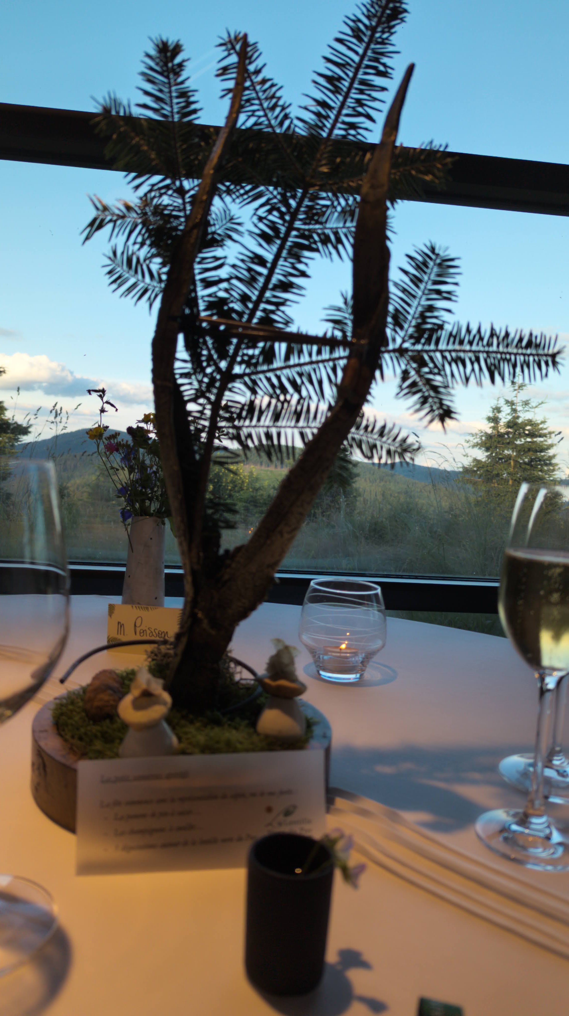Une expérience incroyable , au delà de la qualité des plats qui est évidente , j ai beaucoup apprécié la justesse des produits de par leur localité et leur saisonnalité , pour avoir vécu dans la région j ai eu l immense plaisir de retrouver des saveurs simples et authentiques de produits locaux , qui deviennent justes exceptionnels après être passés sous la baguette magique des chefs ! Chef que l on a eu l honneur de rencontrer en personne , qui passe saluer chaque convive avec une simplicité coutumière des gens de la montagne . C est beau mais pas guindé , tout est dans la justesse de l'endroit , simple et ancré dans une nature qui est au premier plan , on ressent que dans cette maison on est à son service, on la sublime et on s y adapte ... Des valeurs qui se perdent de nos jours , et ça fait un bien fou de les retrouver avec autant de respect. Merci.