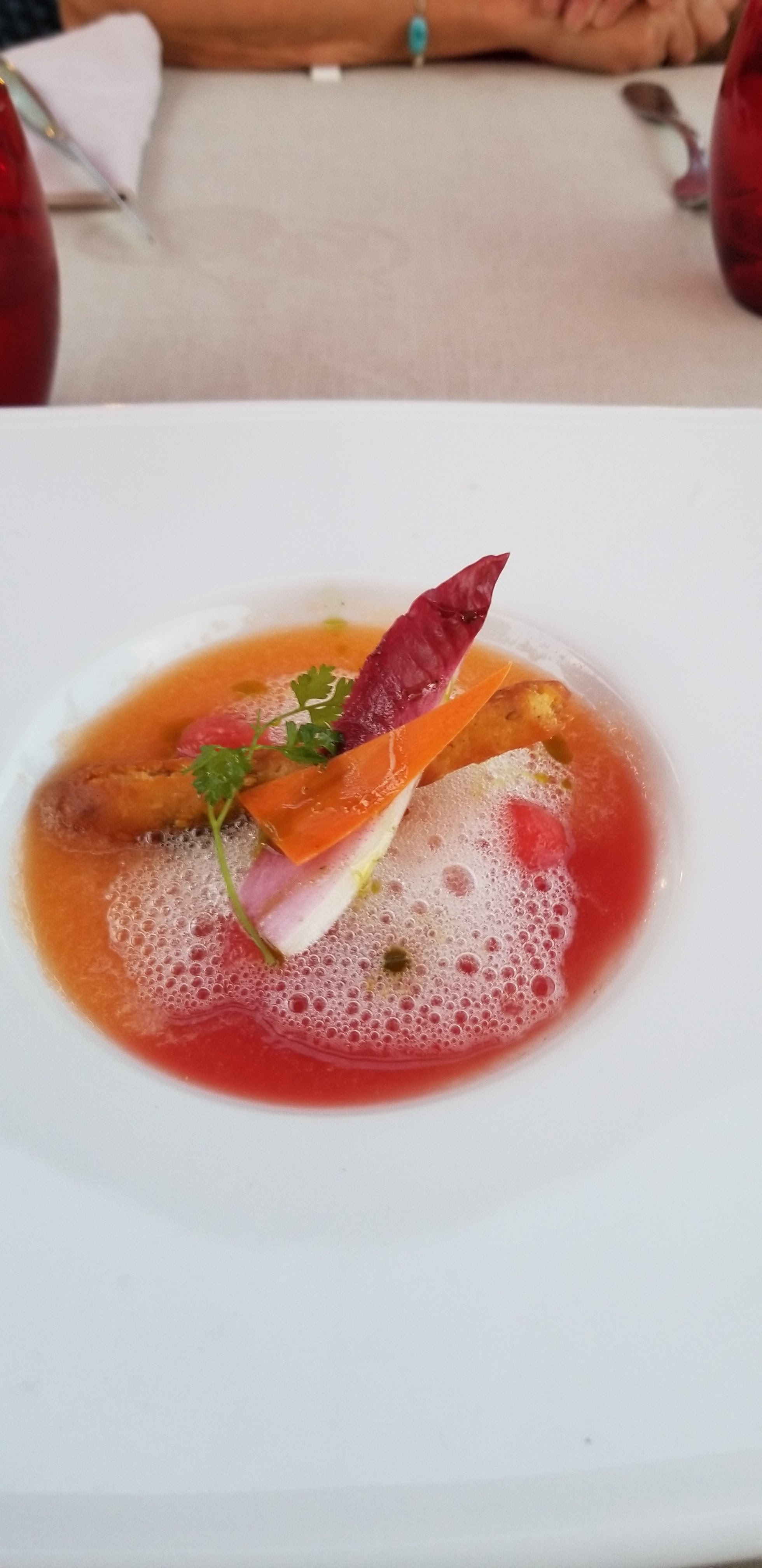 Posté le 10/05/2019 à 06:50"Le cadre est superbe surtout quand on a une table sur la terrasse. Les plats raffinés multiplient les saveurs, un régal pour les yeux et les papilles. Mention plus plus pour l'accueil, le professionnalisme et la gentillesse du personnel. (Photos rosés car sous la banne de la terrasse)"