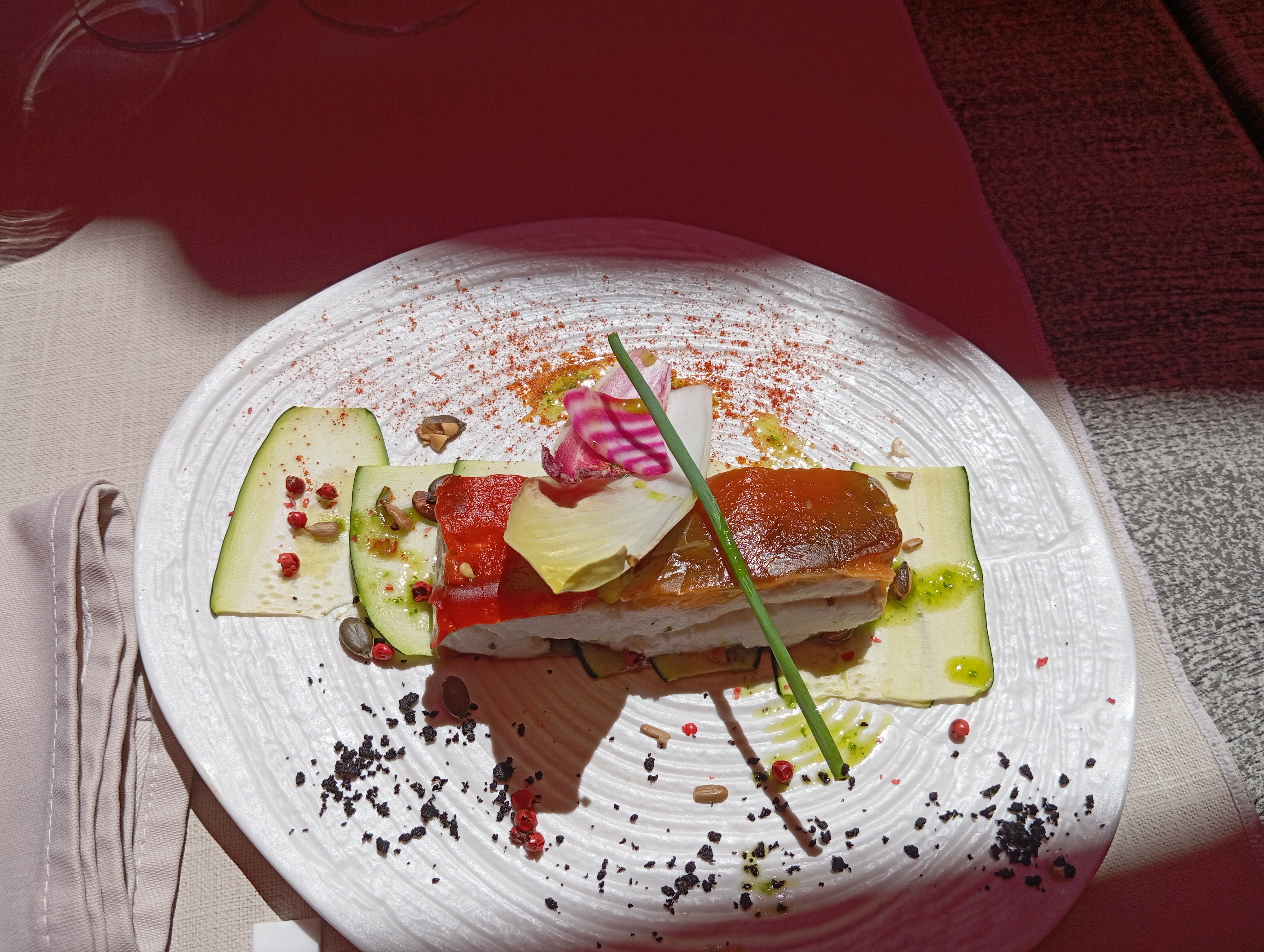 Restaurant très bien noté et conseillé par notre hébergeur. Cuisine savoureuse. Toutefois terrasse ombragée par des stores de couleur rouge qui dénature la couleur des plats, on ne profite pas de ce qu il y a dans l'assiette. Nous avons été particulièrement gênés par la table voisine où un client fumeur enchaînait cigarette sur cigarette. La loi est vague sur le sujet, la terrasse étant couverte, ouverte sur la salle interieure et les tables plutôt proches, je pense que le restaurateur devrait privilégier le confort des non-fumeurs. Dommage, surtout en 2021. Accueil et service plutôt froid. Avons connu beaucoup mieux pour la rapport qualité prix service. Le Michelin et le gault ne remplacent pas les qualités humaines