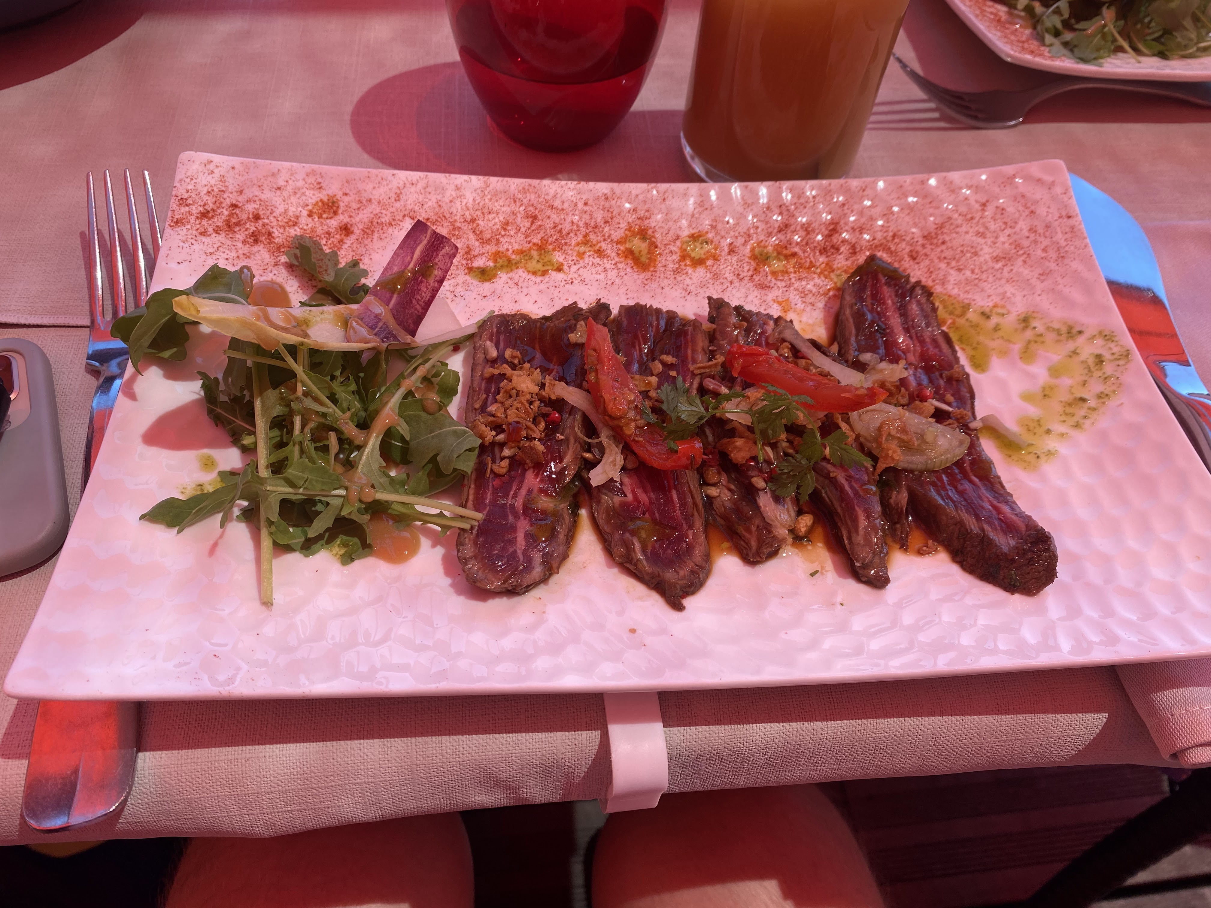 Nous avions mon compagnon et moi réservé une table sur la terrasse, vu magnifique, cocktail à la fleur d'hibiscus juste à tomber ! Et plats vraiment savoureux, je garderai un excellent souvenir de ce moment en amoureux
