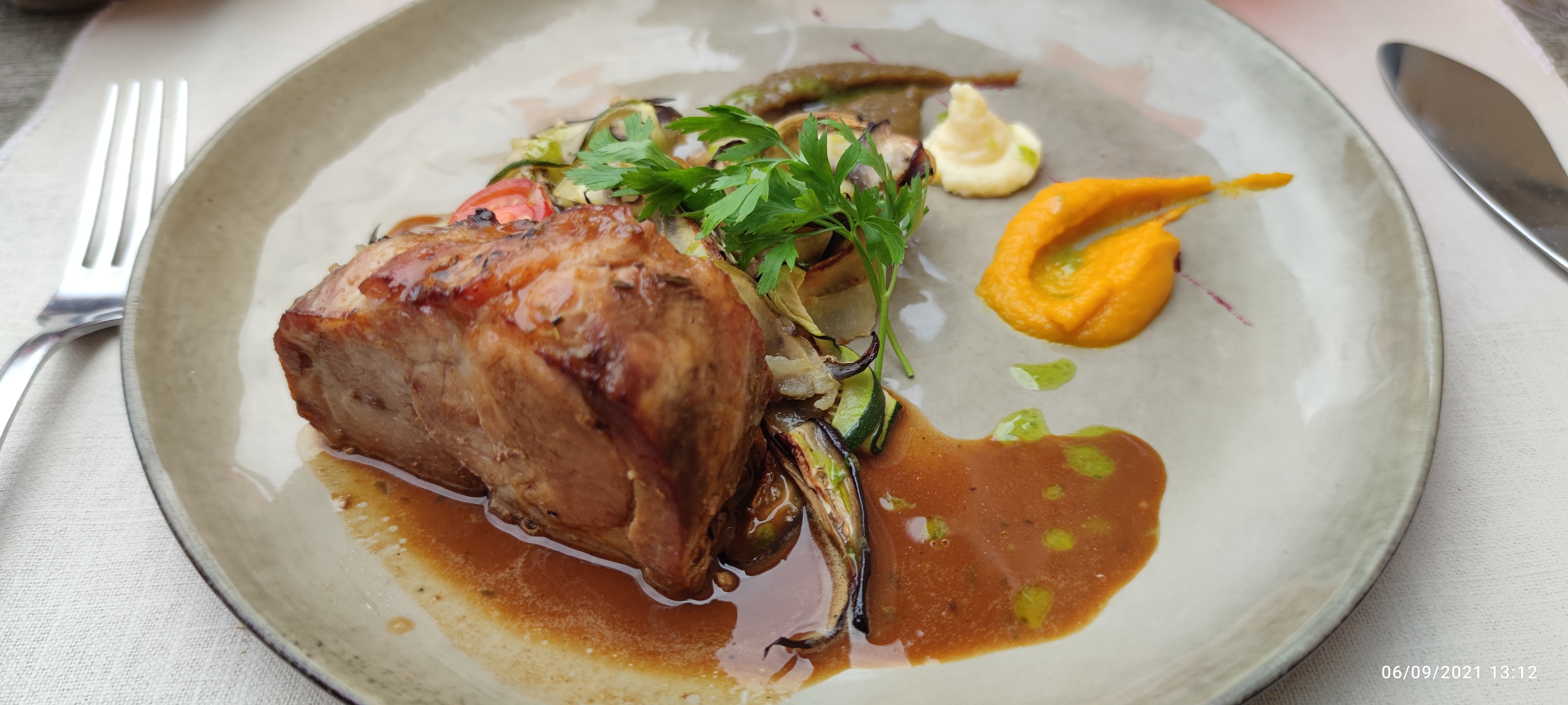 Posté le 06/09/2023 à 11:24"Un déjeuner à 29€ Entrée : marbré de chèvre frais poivron mariné 👍soupe fraîche de melon … Plats moelleux de cochon Dessert déclinaison d’agrumes et carpachio d ´ananas Un régal"