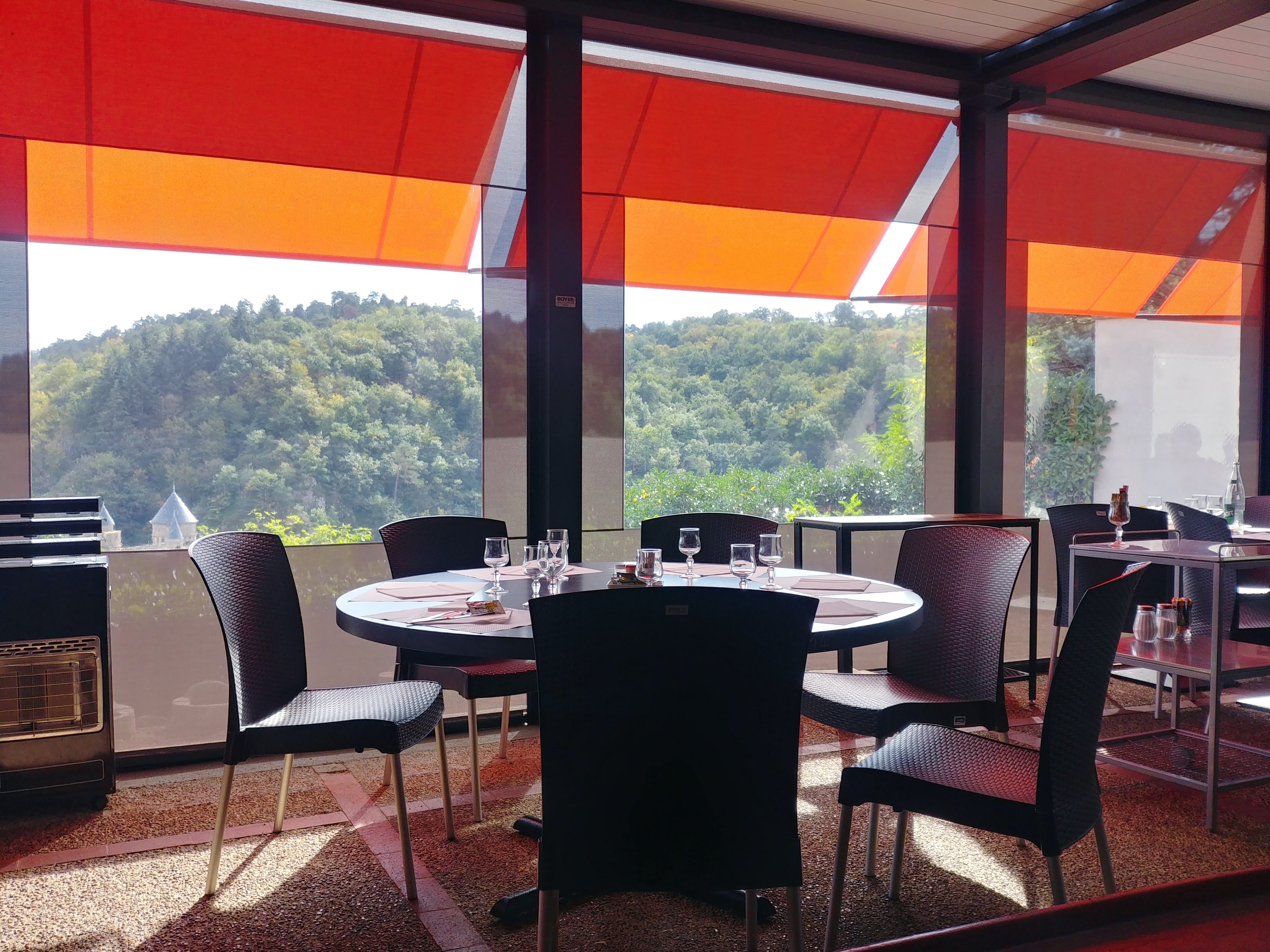 Un cadre magnifique avec vue sur le château de la roche. Repas délicieux et copieux . Une petite serveuse très agréable et drôle.