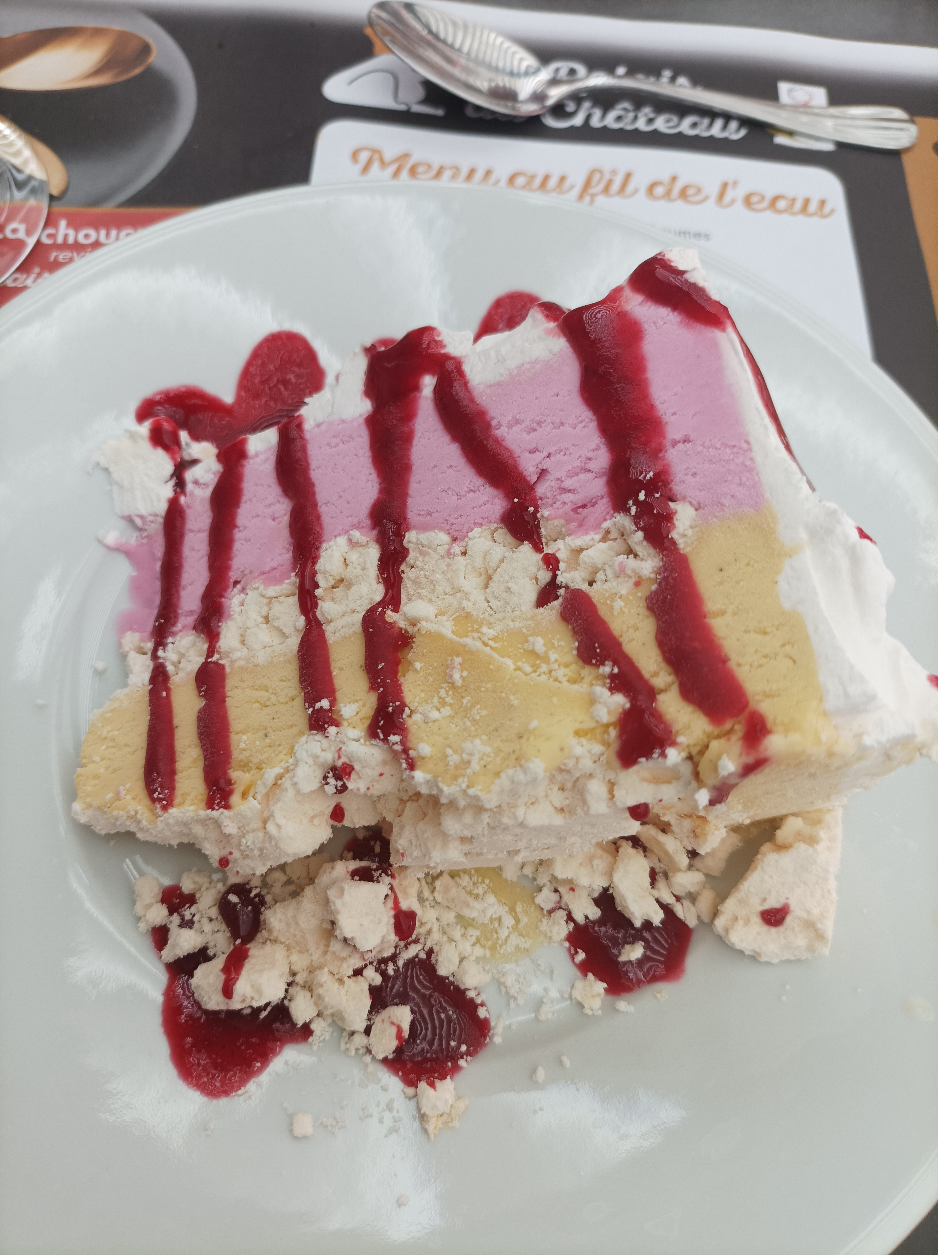 Notre table en terrasse donnait sur le château de la Roche ce qui a rendu ce moment très agréable et convivial. La serveuse était très souriante et très efficace. Les grenouilles étaient très bonnes...Le vacherin très généreux en volume et super goût de vanille/ fraise !!! Seul petit bémol que vous ne fassiez pas aucun mocktail ( cocktail sans alcool) surtout le Virgin mojito où on remplace juste le rhum par de l'eau gazeuse.