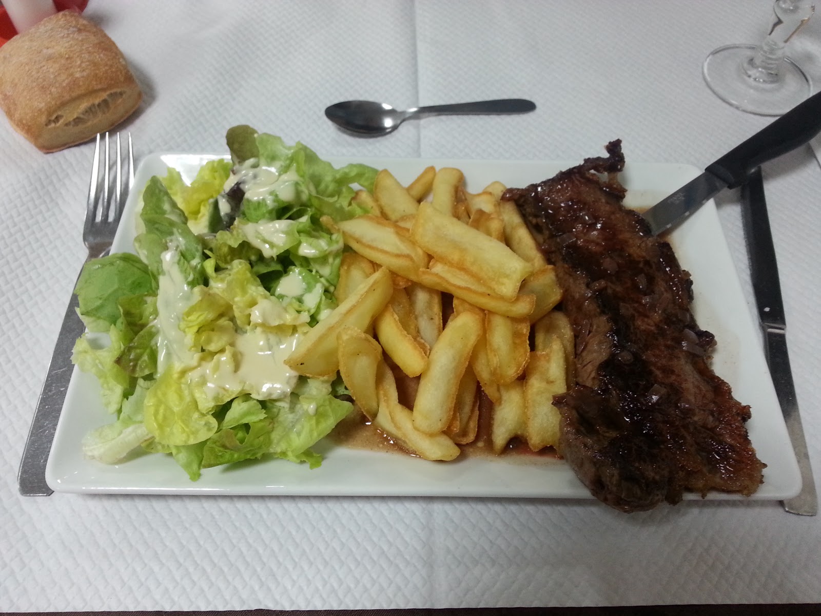 Repas grenouille, avec salade en sachet grenouille sèche et fade. Jusque-là je n'avais resalé de grenouilles. Les serveurs qui se tirent dans les pattes en essayant de prendre les clients à partis. Et un patron qui ose demander des pourboire pour le service, sans se soucier de comment c'est passé notre repas.