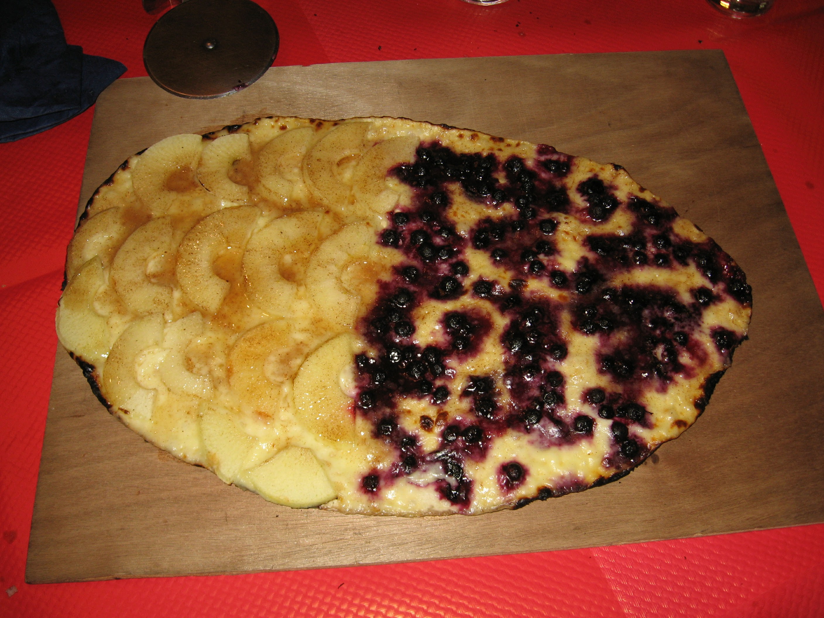La tarte flambée aux oignons rouge très bonne. Tarte flambée aux pommes en dessert un régal.