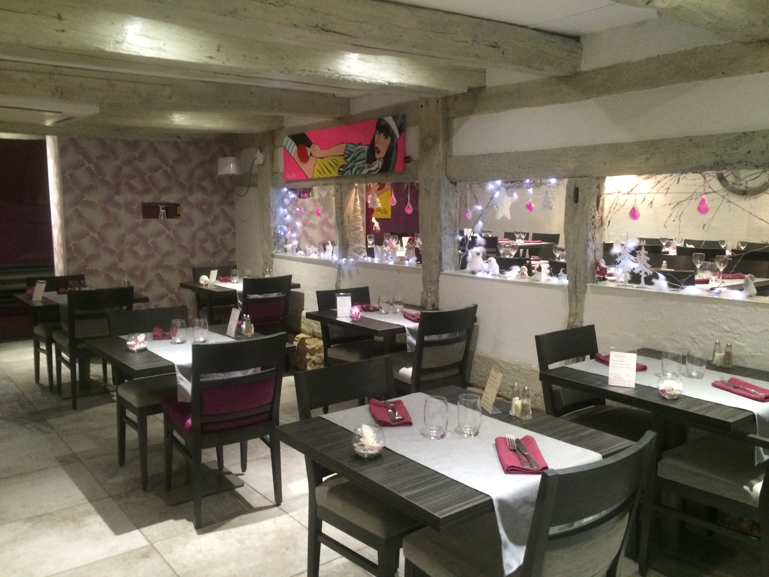 Le restaurant est beau. Les carpes-frites sont bonnes aussi, on y était déjà allés juste pour cela. Le vin servi déjà ouvert, on a commandé des croûtes aux champignons, 3-4 champignons sur une sauce brune avec un morceau de pain grillé (la croûte), la viande après était tiède et insipide. Conclusion pour nous, je suis d'accord avec Chantal Kreittner, allez-y pour manger des carpes-frites, pas de soucis. Pour la cuisine, c'est juste pour se remplir l'estomac.