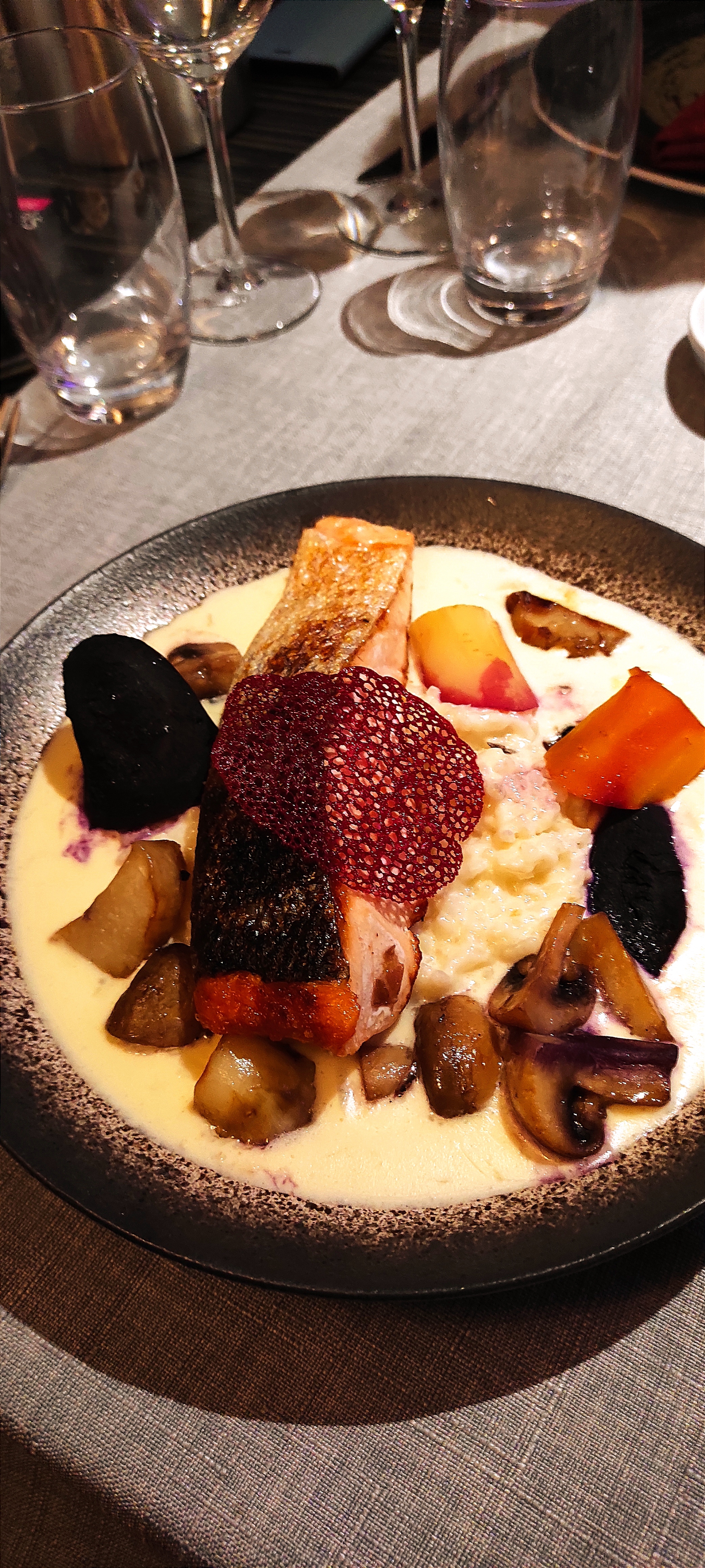 Nous avons passé un agréable moment dans ce restaurant, le personnel y est très accueillant, souriant, j'ai pris comme plat le ''saumon rôti avec rissoto, et legumes'' un vrai régal, servi bien chaud, une assiette bien garnie. Petite suggestion au chef qui apperement fait d'excellentes tartes au citron...pensez y pour la carte des desserts ☺️😉