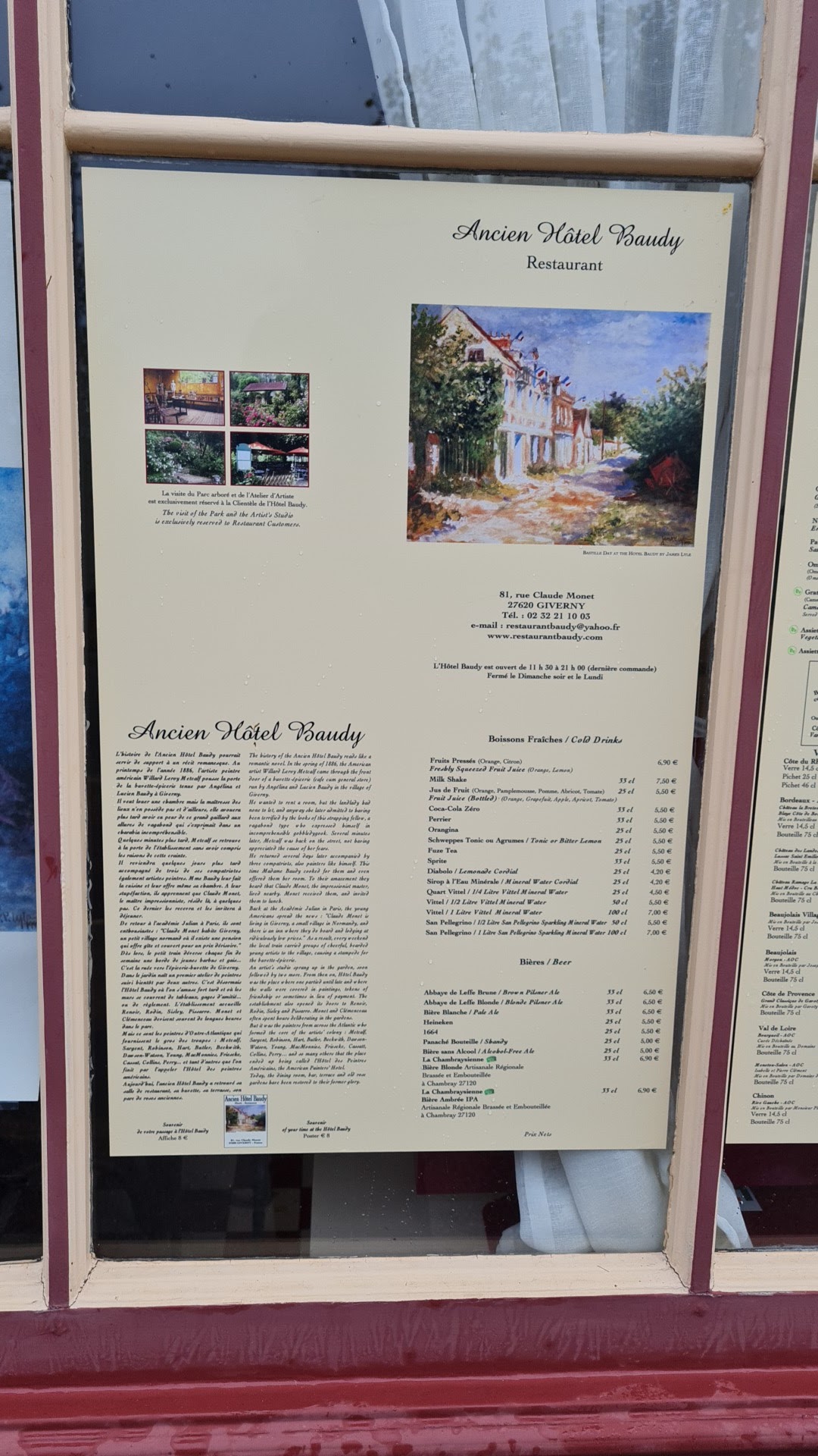 Découvrez toutes les informations concernant Restaurant français Restaurant Baudy (Ancien Hôtel Baudy) qui se situe au Haute-Normandie, 81 Rue Claude Monet, 27620 Giverny (27). Cette fiche inclut les photos, les horaires d'ouverture, l'adresse, le numéro de téléphone et les avis des clients.
