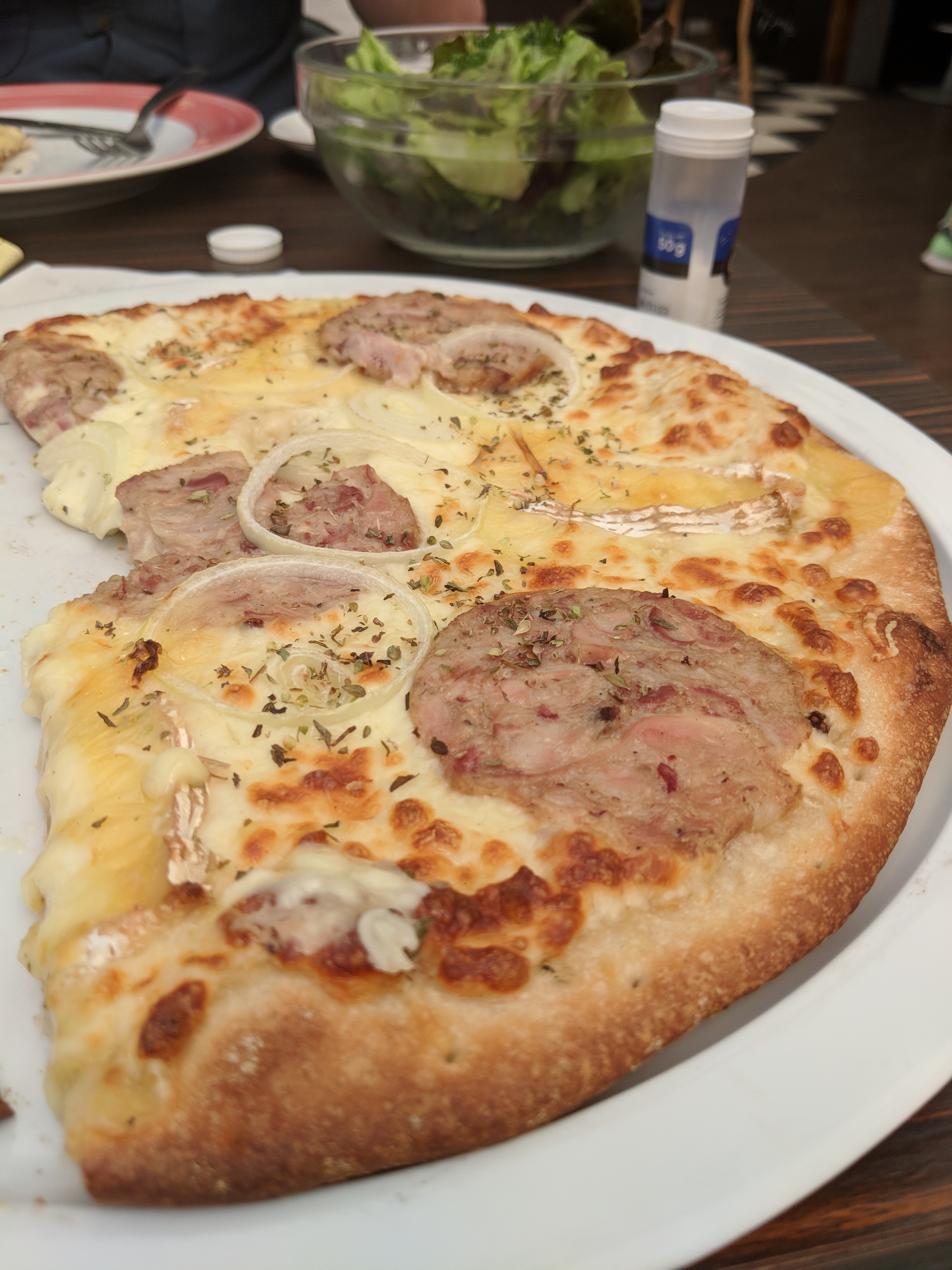 Un restaurant sympa pas trop loin de ce qu'il y a à visiter. Dommage de se retrouver à un table près de la porte d'entrée en plein courant d'air. On a eu froid tout le long du repas. Je suis végétarienne, je prend un panini sans viande, bien dommage de trouver un morceaux de viande dans un panini 3 fromages. Sûrement un reste du précédent qui chauffait. Pas de menu enfant. Les pizzas sont immenses mais si vous la partager vous devrez payer un supplément ! Le personnel est très sympa. Beaucoup de monde dans le restaurant, ce qui en fait un gage de qualité.
