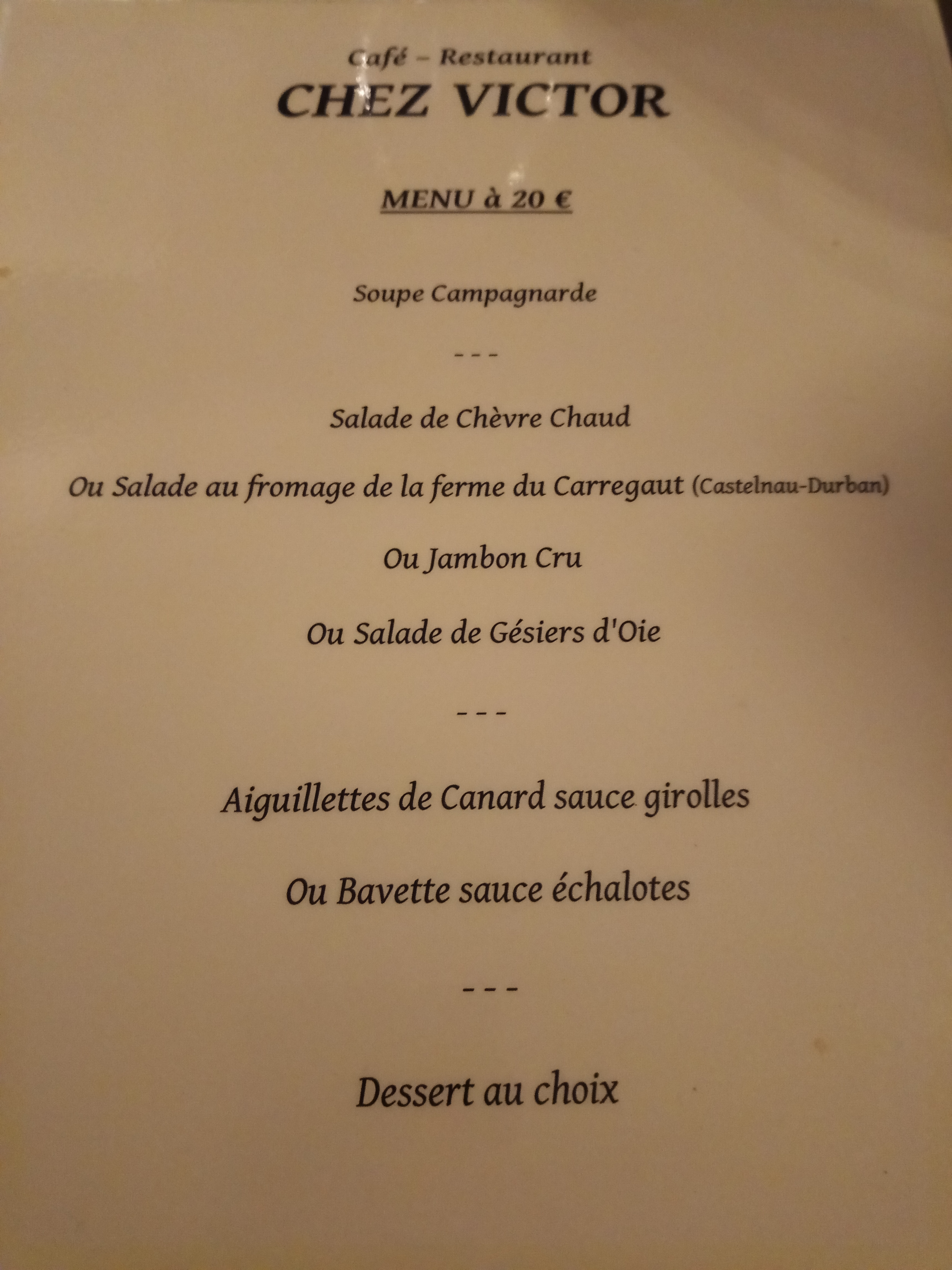 Que dire de ce sympathique dîner à l'auberge Chez Victor. Une famille accueillante et une cuisine généreuse typiquement Ariègeoise et l'incontournable soupe à l'oignon et fromage servie gracieusement et généreusement. Pensez à réserver, nous recommandons.