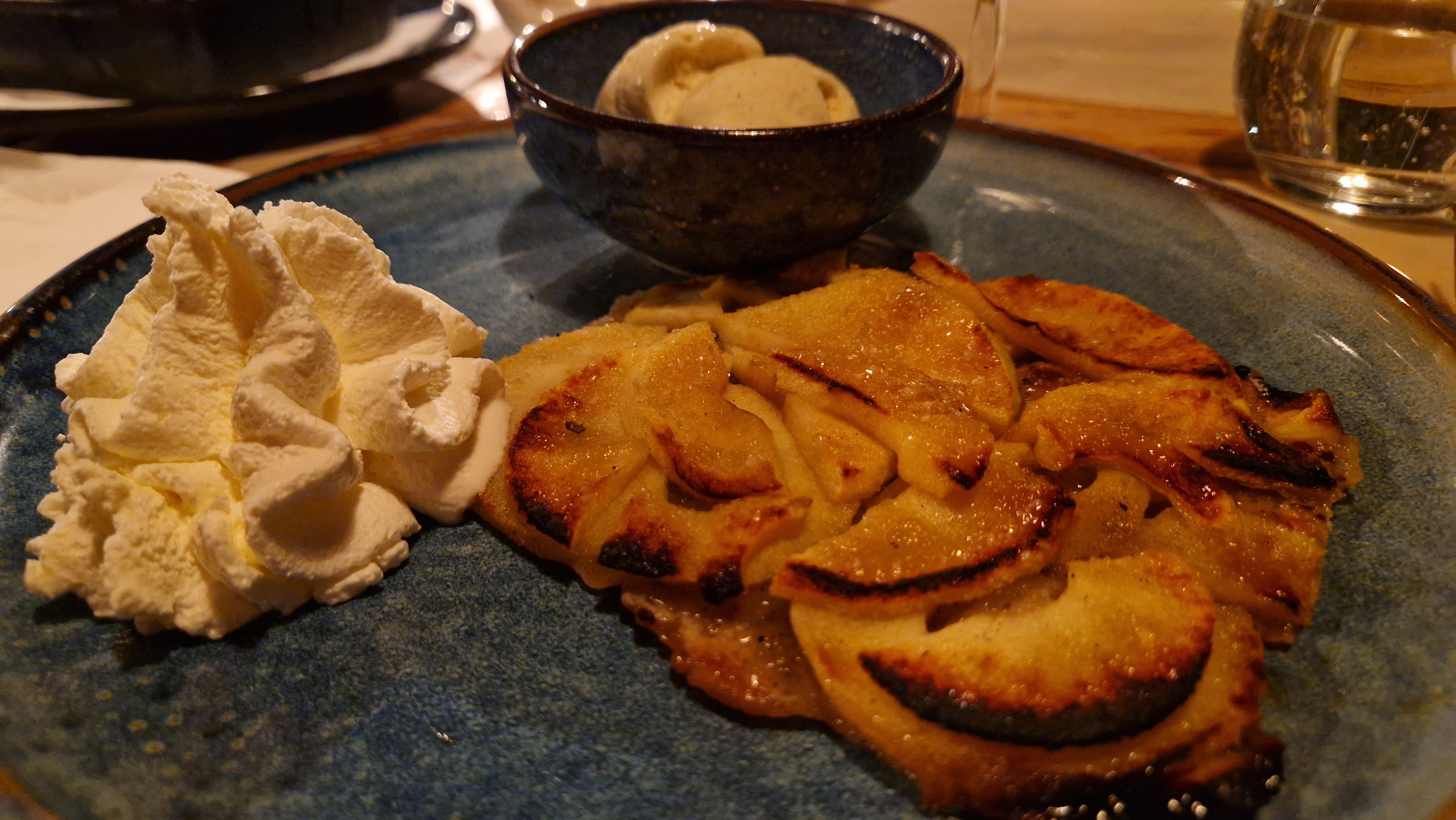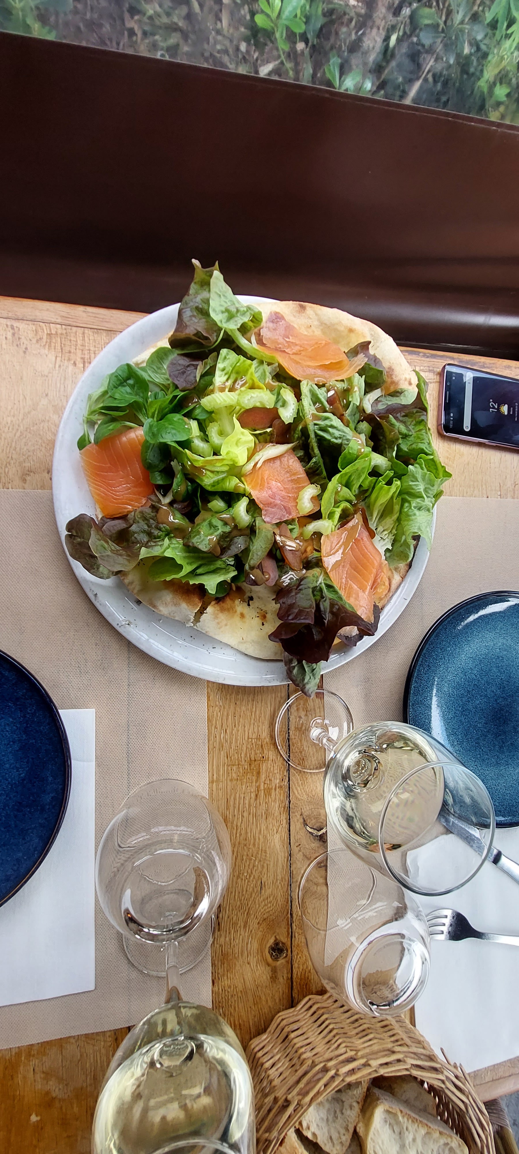 Très bon dans l’ensemble, cadre très beau, bien situé, personnel très aimable, moules très bonnes et pizza au feu de bois également Normes COVID respectées Je ne peux que recommander !